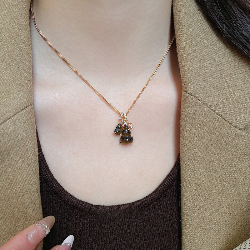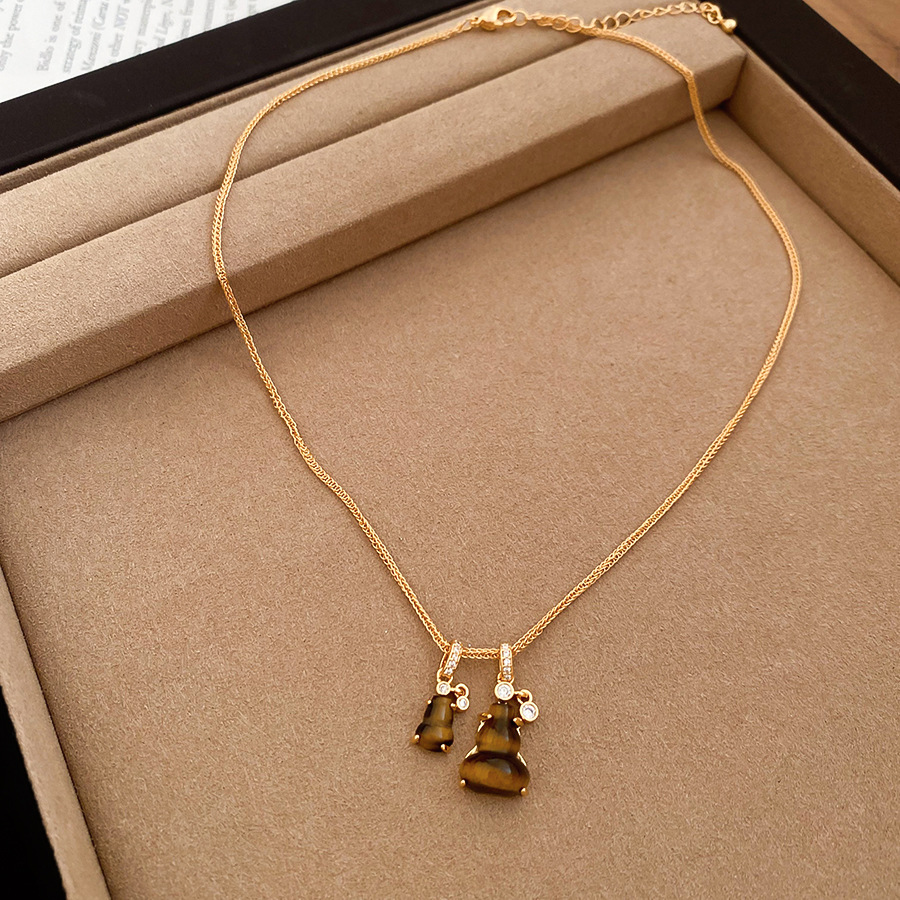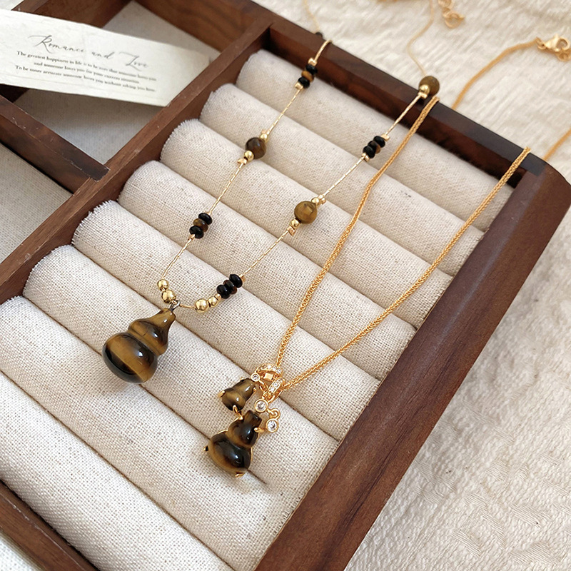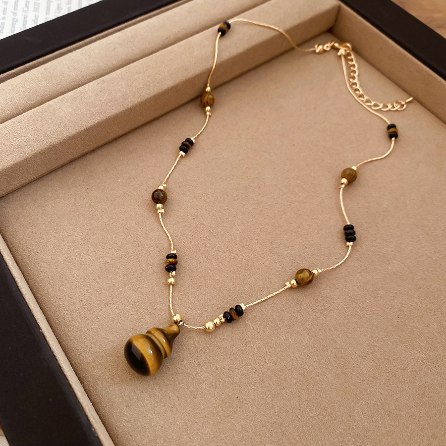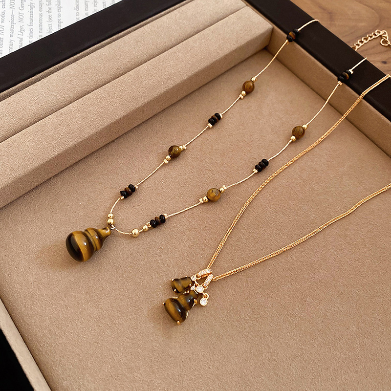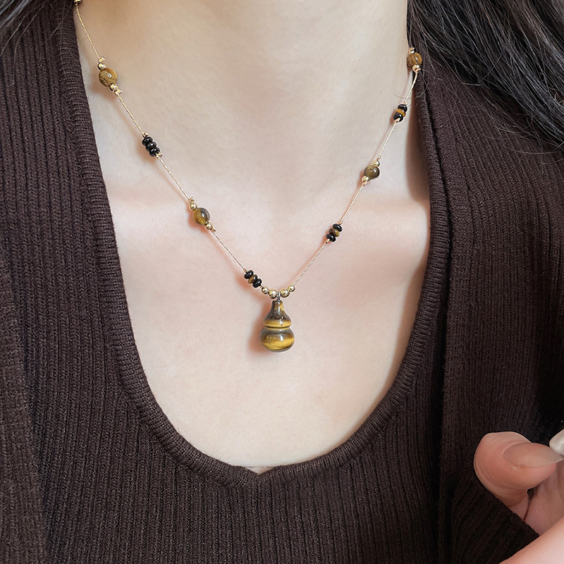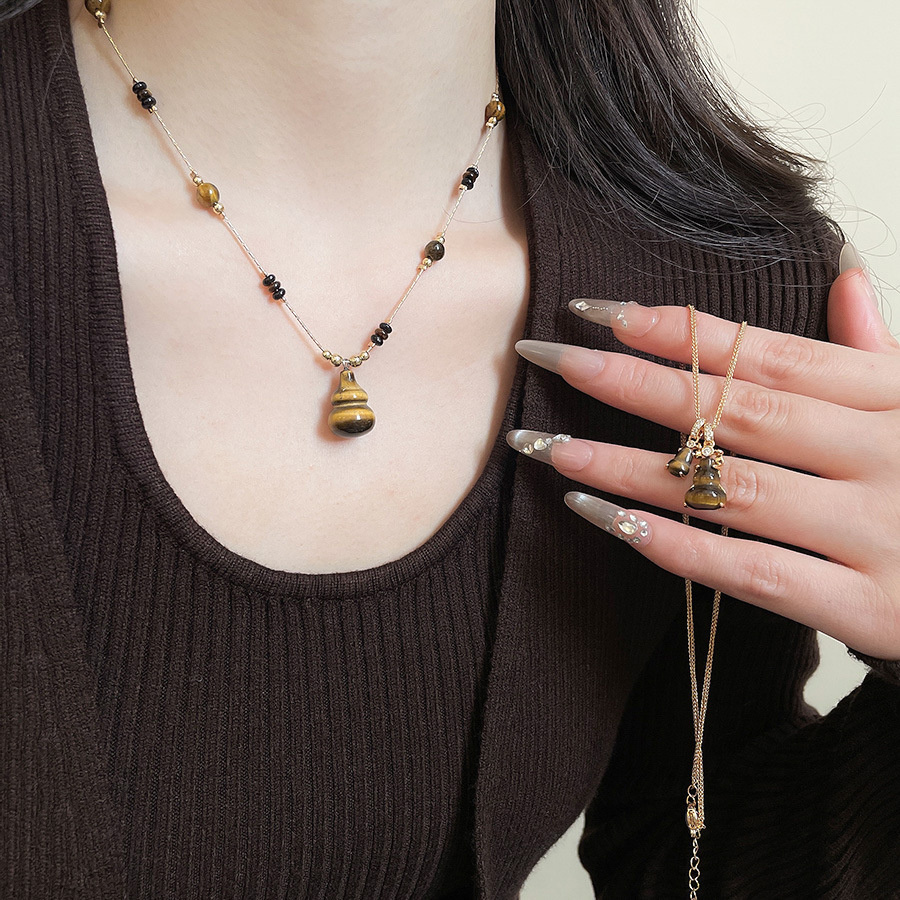 秋冬复古简约虎眼石串珠葫芦吊坠项链配饰女毛衣链轻奢高级感项饰 English | 投诉