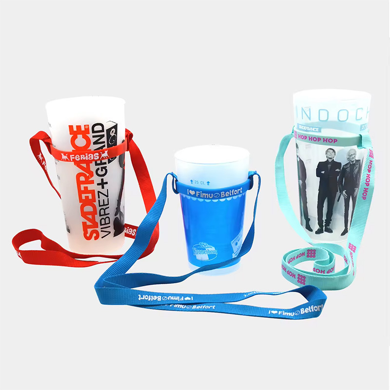 工厂定制LOGO热转印涤纶水杯挂绳奶茶水瓶挂带防脱硅胶环水壶挂件