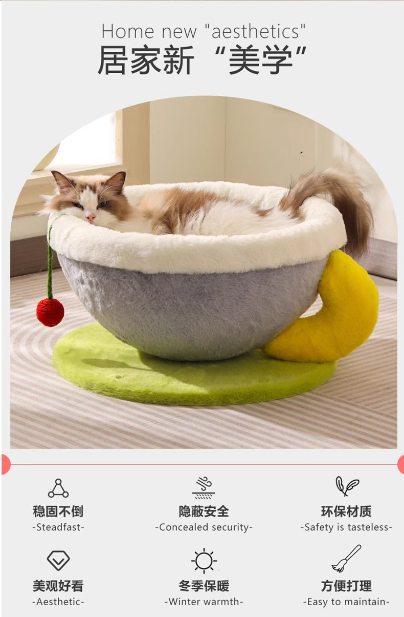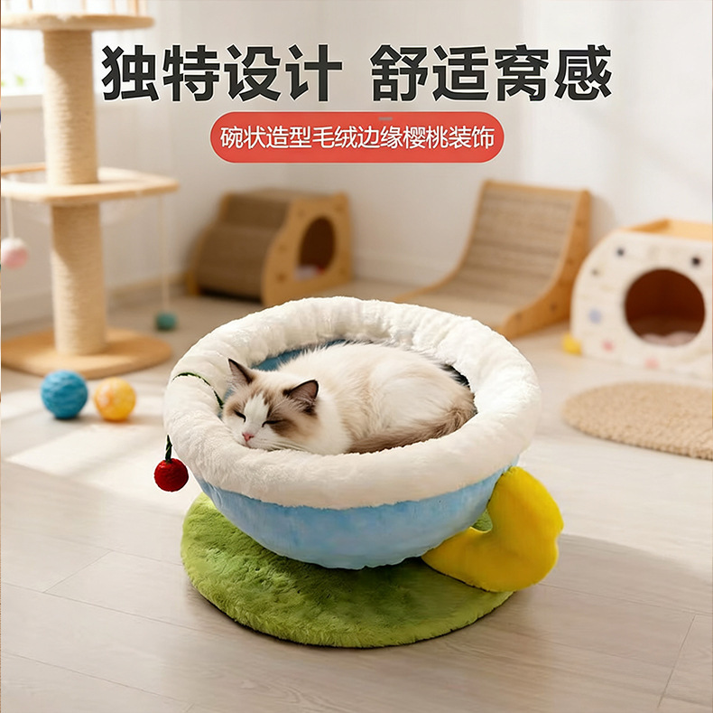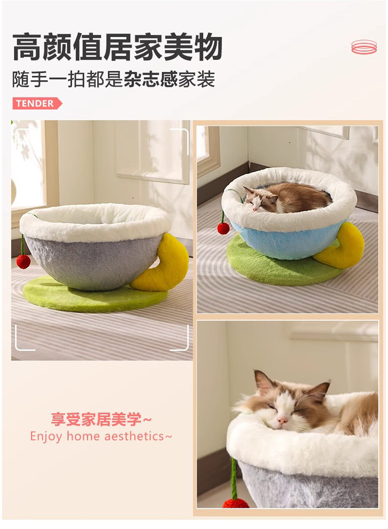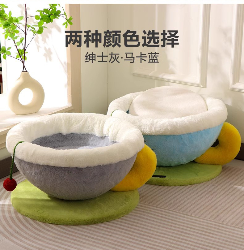 冬季保暖猫窝咖啡杯宠物窝创意狗窝圆形睡觉窝柔软四季窝跨境爆款