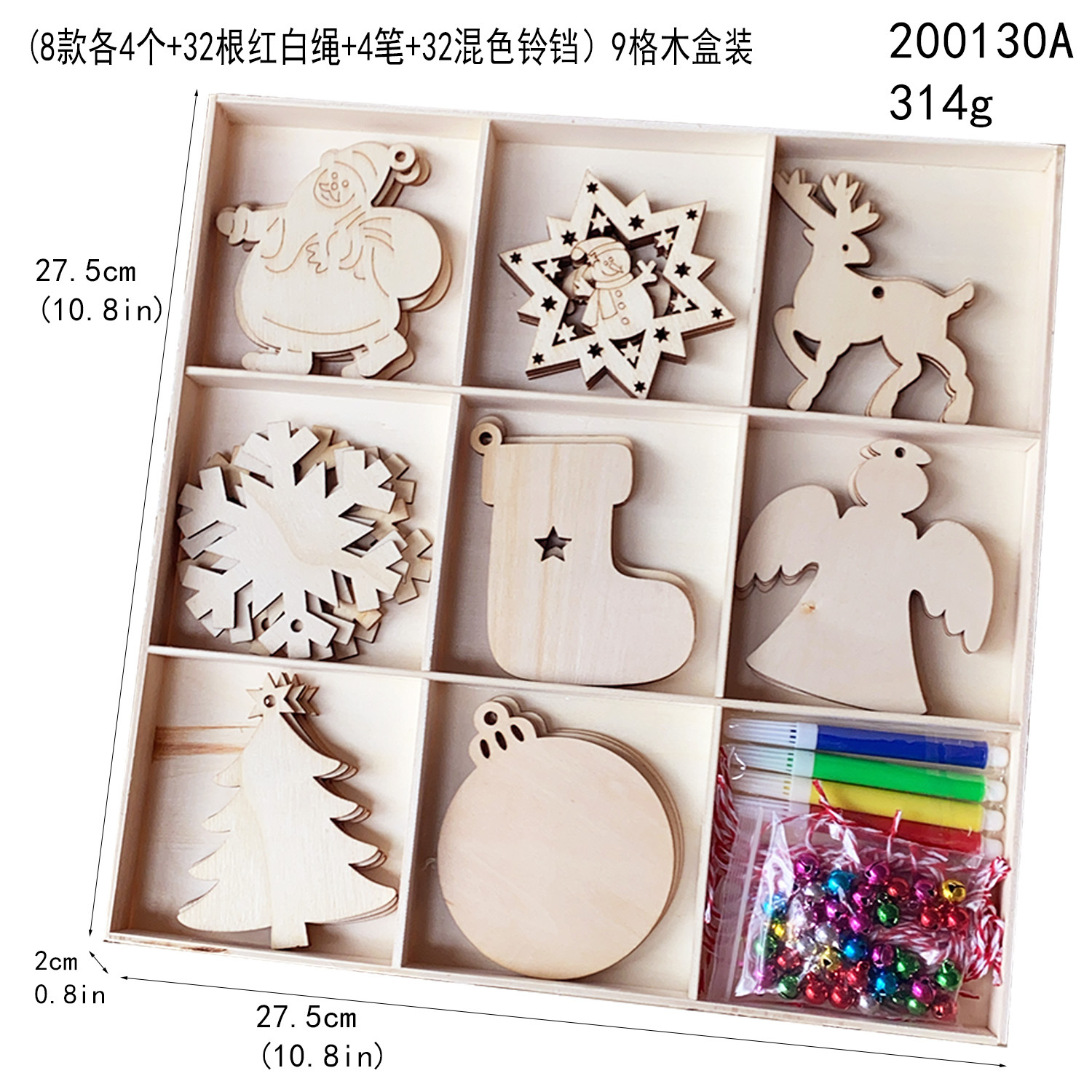 产品货号:24个挂件+6格木盒:171103 ,6格原色木盒:171104