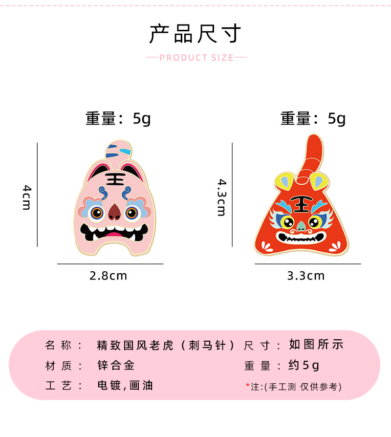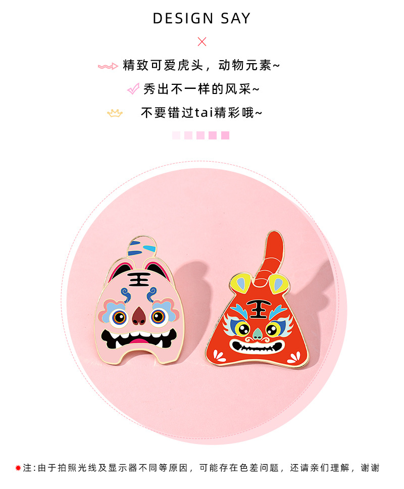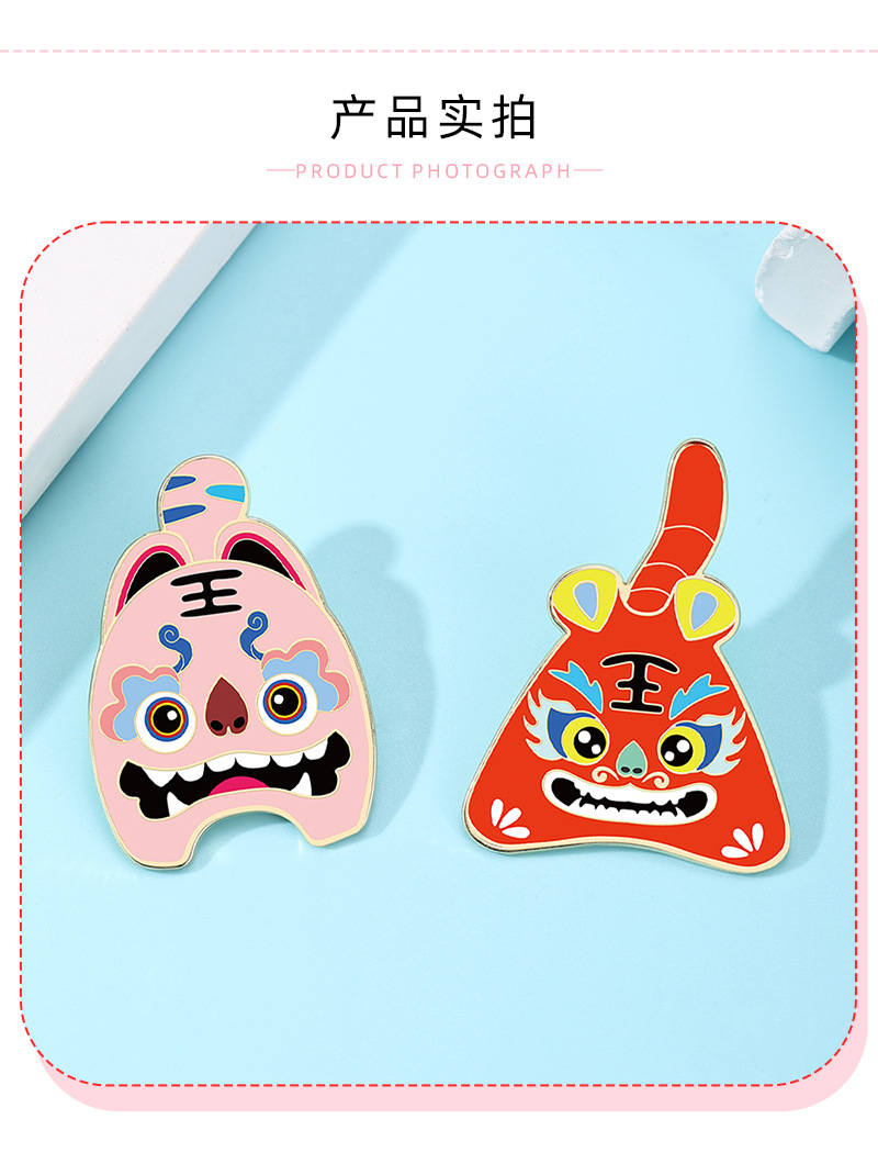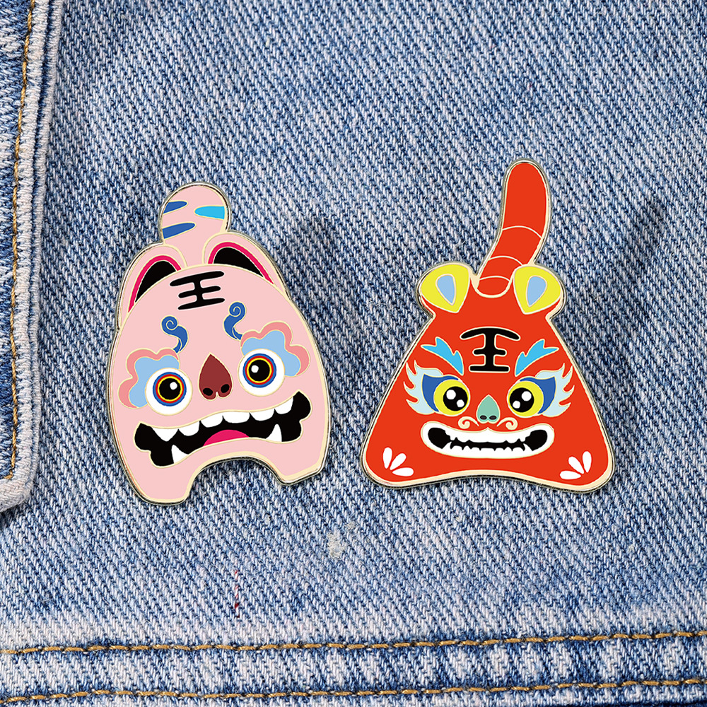 国潮瑞兽萌虎卡通胸针可爱动物年兽小老虎金属徽章pin衣服装饰品 English | 投诉