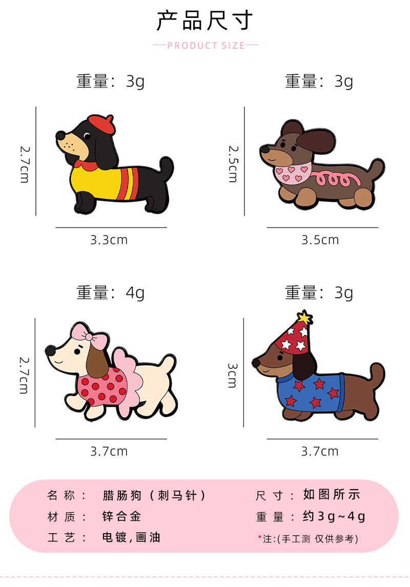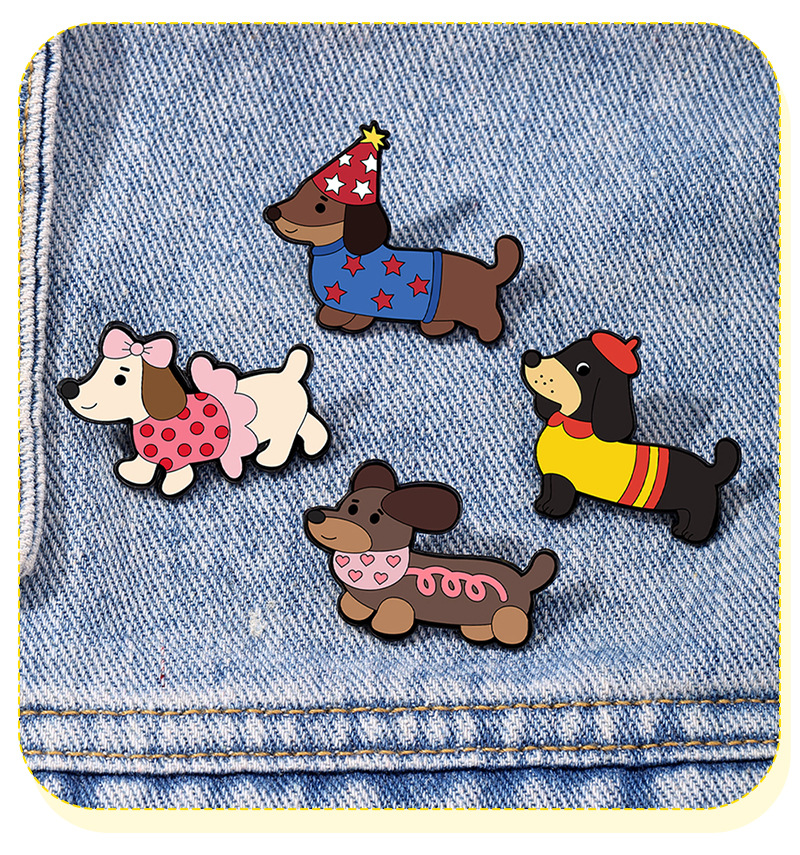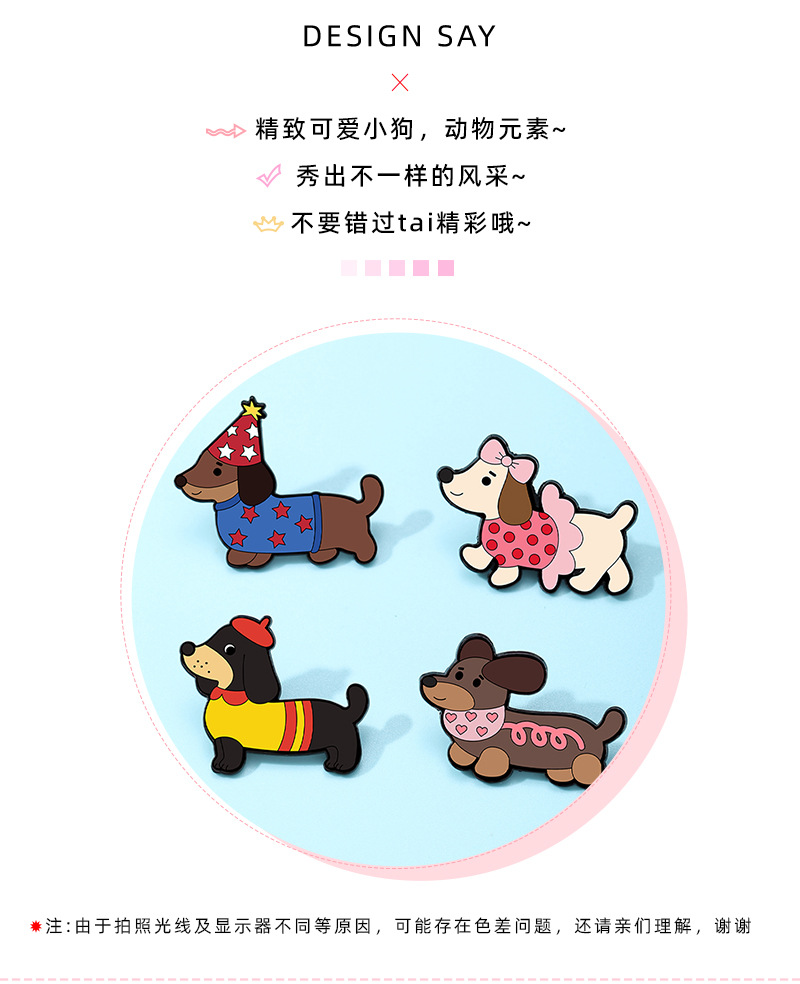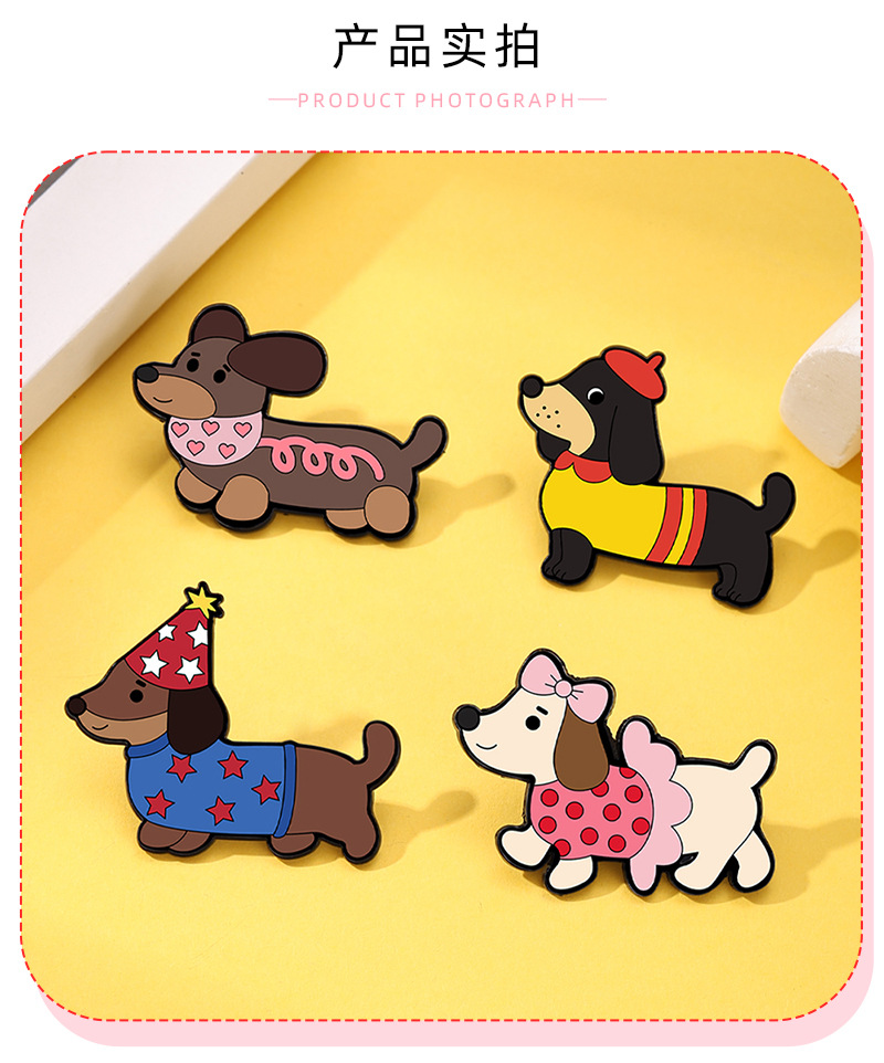 可爱宠物卡通胸针腊动物肠狗金属徽章别针固定衣服扣针ins潮饰品 English | 投诉