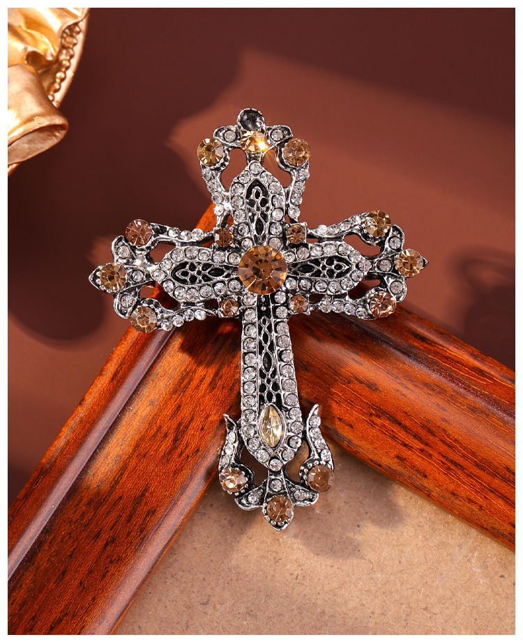 欧美中古镶钻十字架胸针复古宫廷风高档小众设计感胸花男西装配饰 English | 投诉