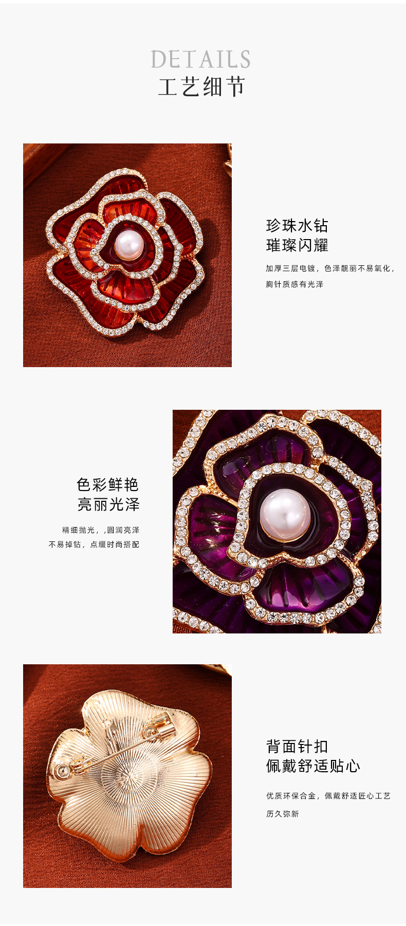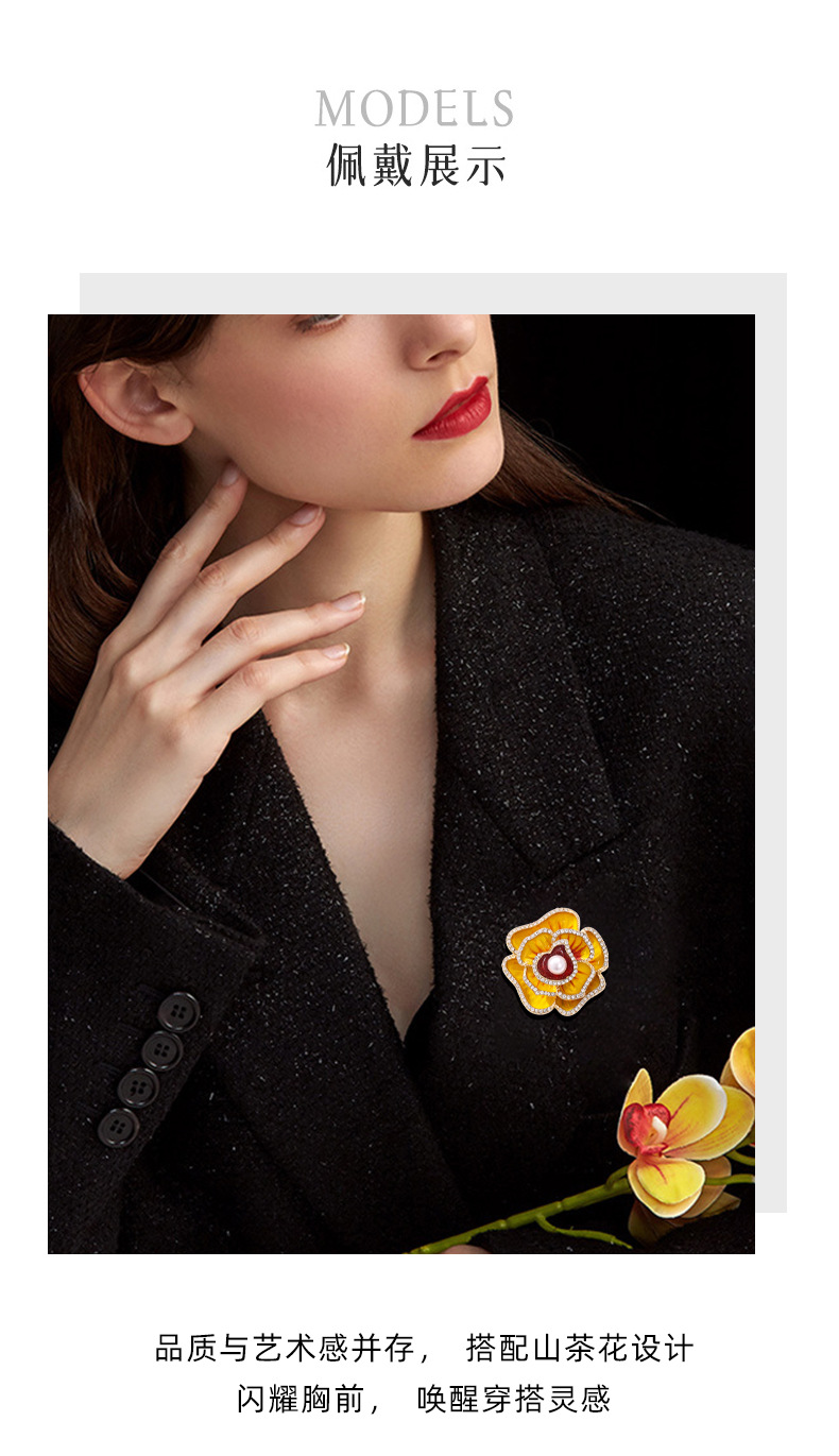 时尚法式新款山茶花胸针轻奢高级感高档女士胸花国潮配饰毛衣别针 English | 投诉