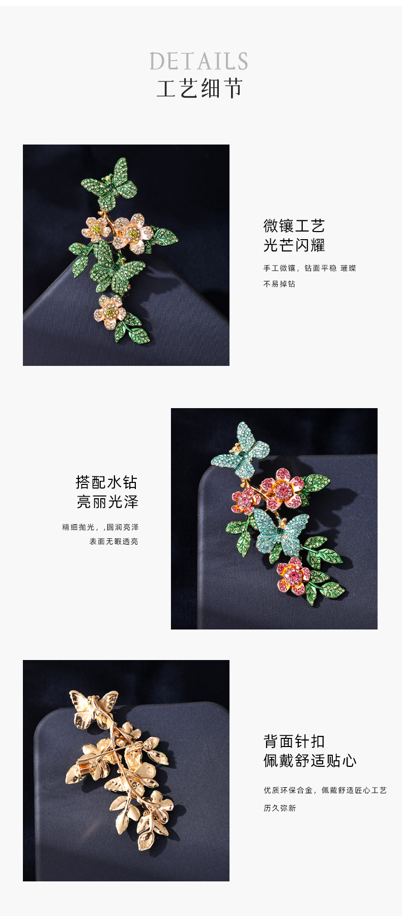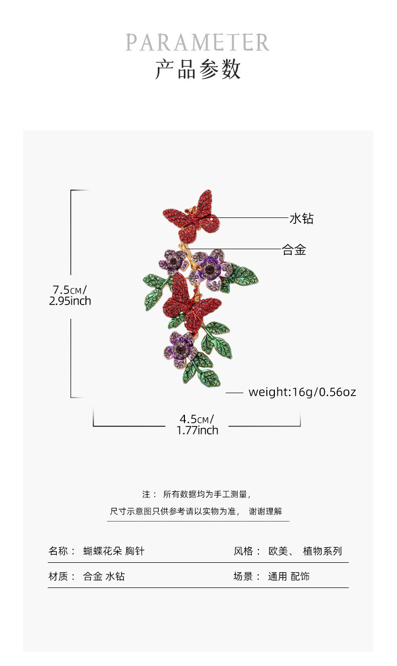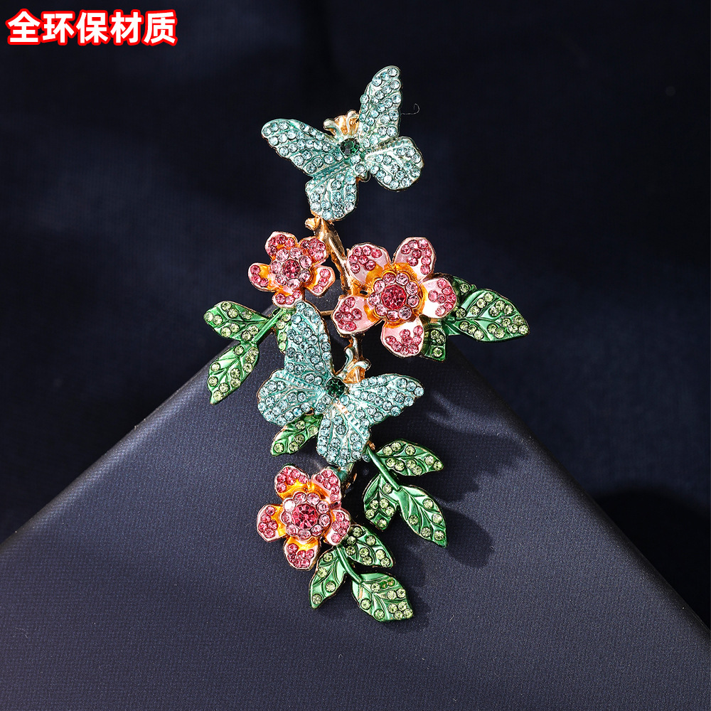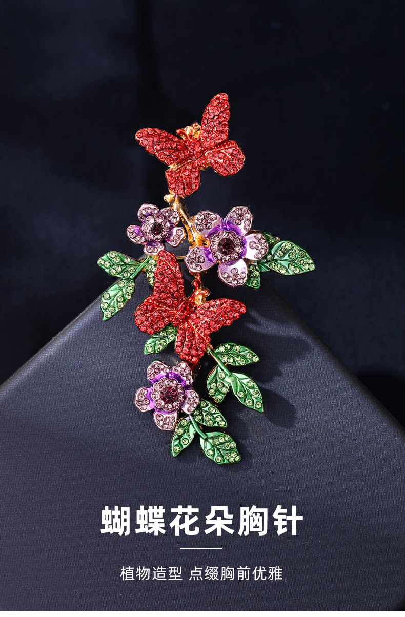 复古风清新彩绘花朵蝴蝶胸针小众设计轻奢优雅防走光西装外套别针 English | 投诉