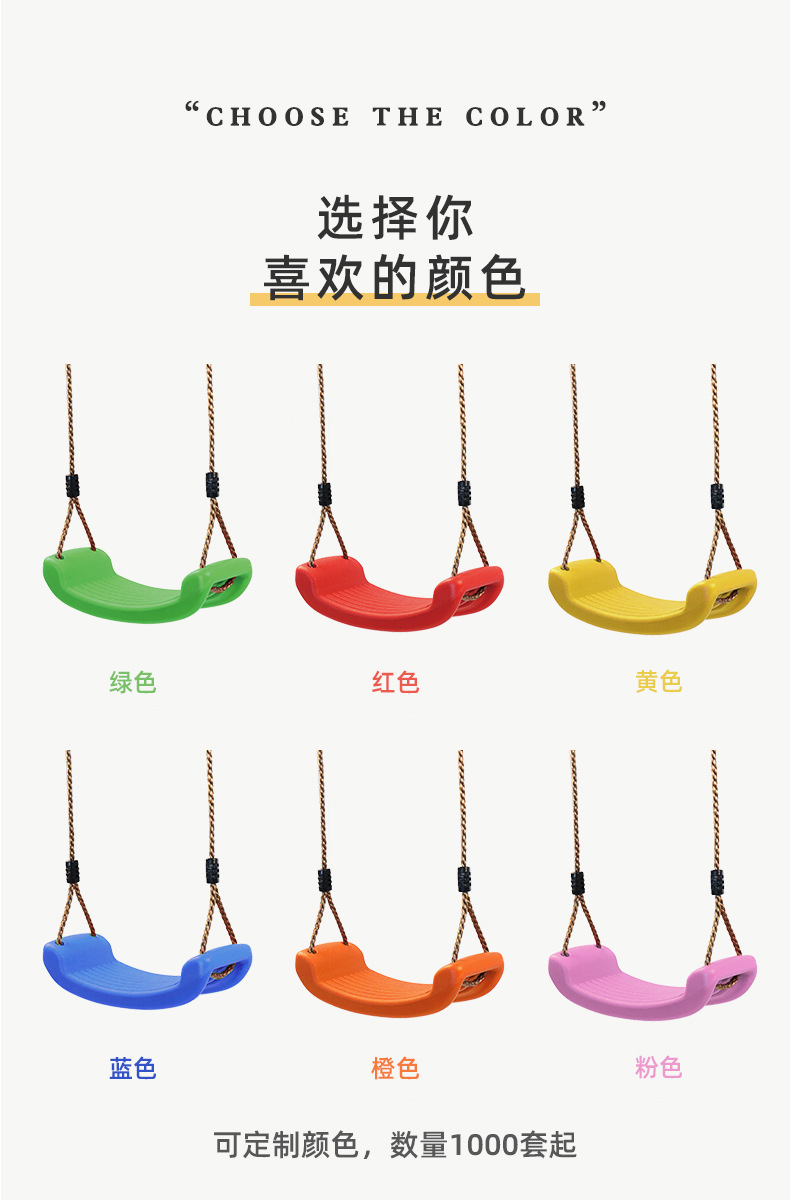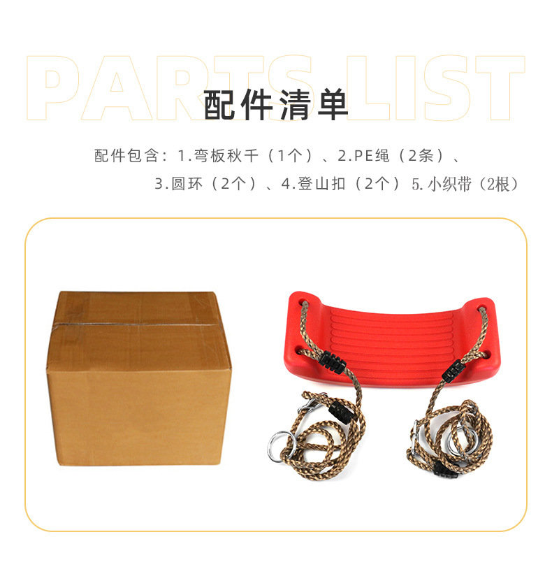 此链接价格为秋千+连接扣+连接带,包括秋千板、PE绳、挂钩2个,连接带2根(25cm),颜色随机发货