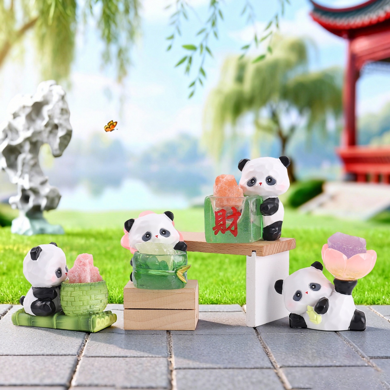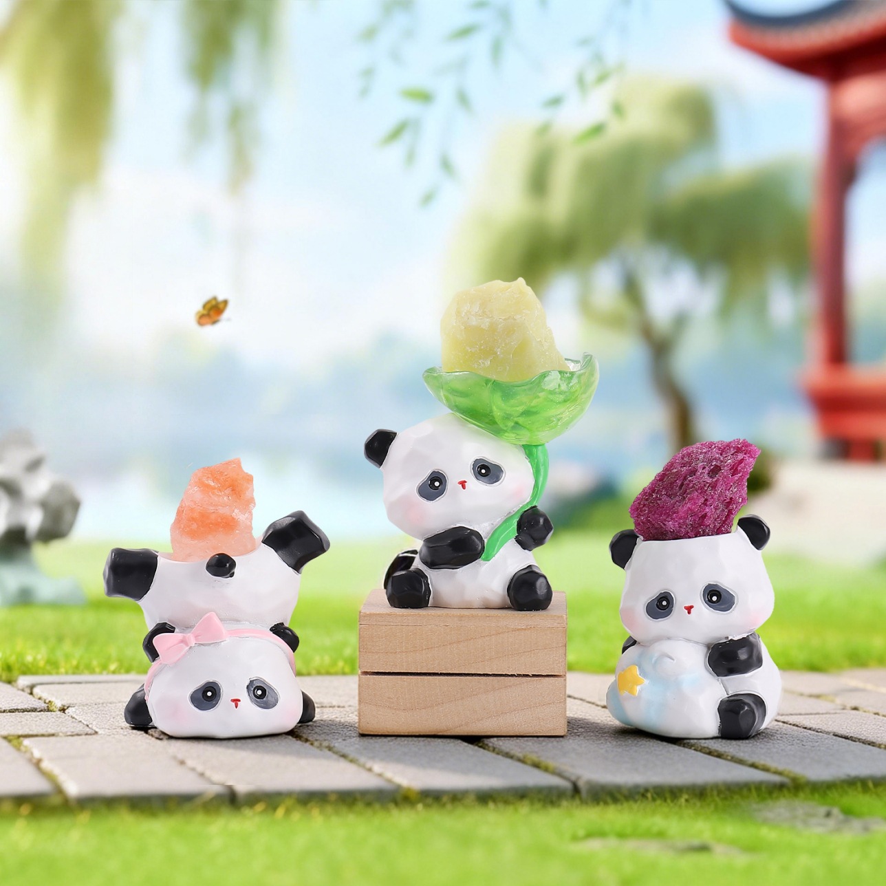 A100憨憨熊猫水晶小豆丁盲盒