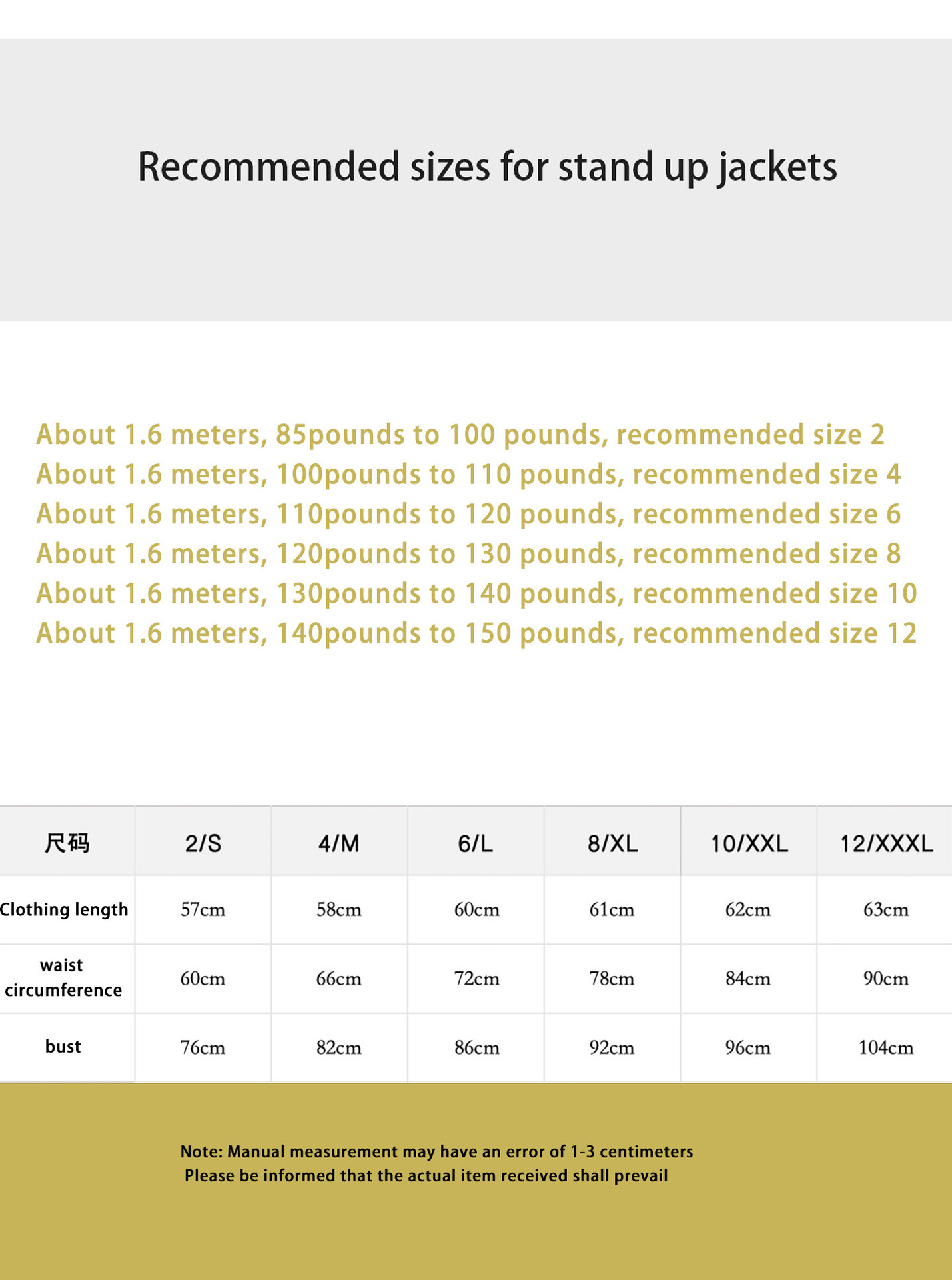 颜色: 黑色款立领夹克,白色款立领夹克,黛蓝色立 袖长: 长袖 上下装分类: 上衣 材质成分: 锦纶 尺码: 2/S,4/M,6/L,8/XL,10/ 材质: 锦纶 面料: 锦纶 是否含胸垫: 否 下装款式: 长款 品牌: LD 货号: 111 上市年份季节: 2024 适用对象: 女 重量: 0.28 kg/件