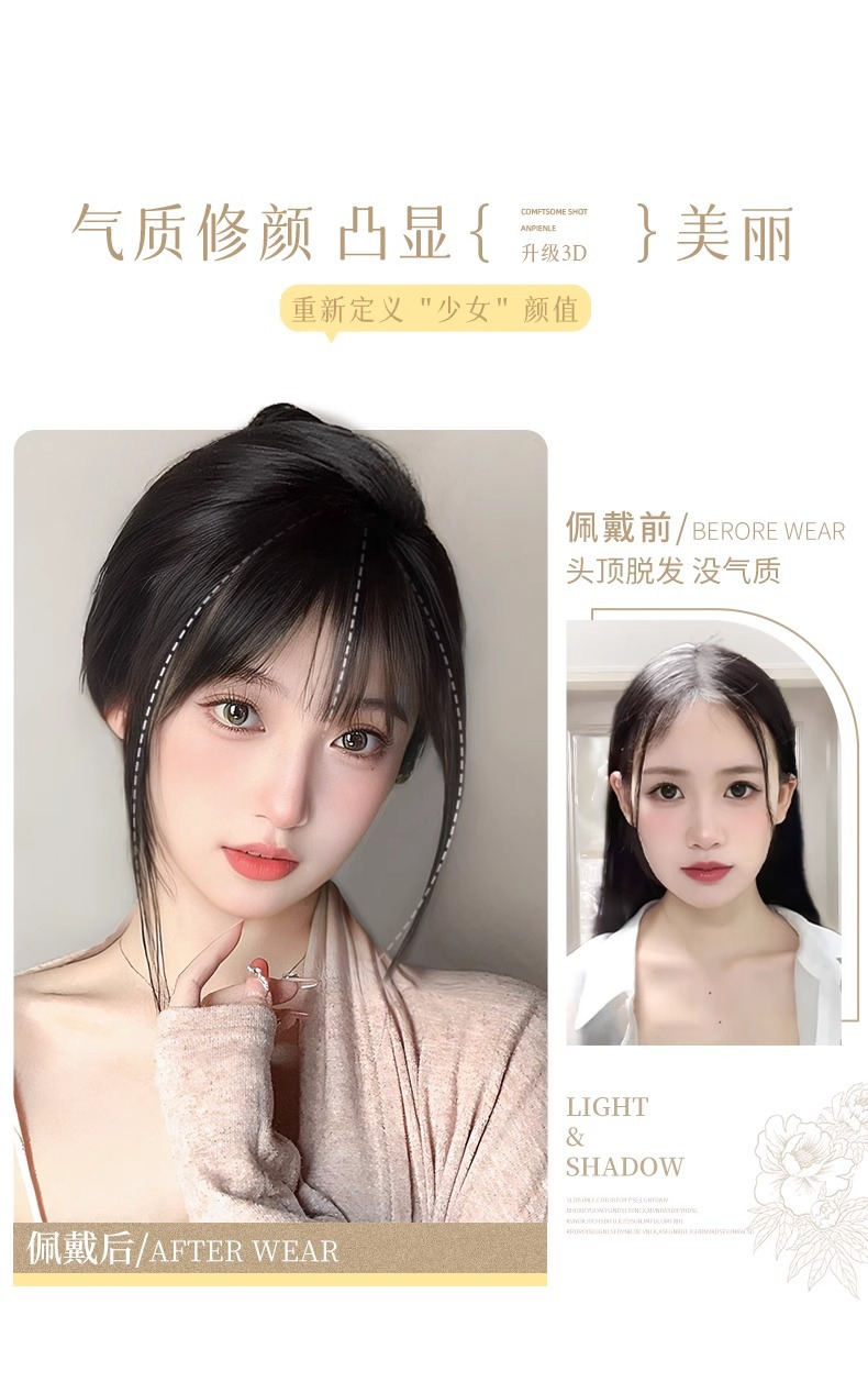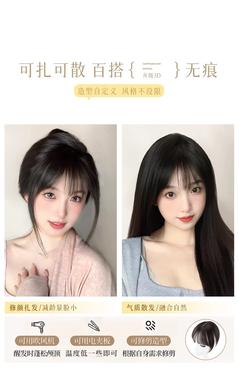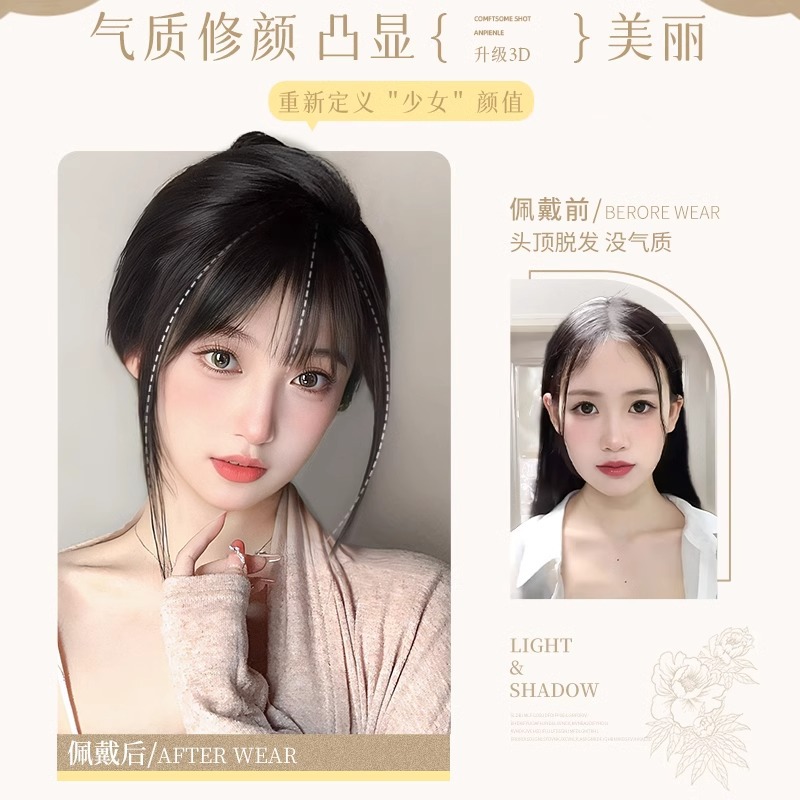 假发女头顶刘海补发片全真人发自然前额增发量3d法式刘海假发片 English | 投诉