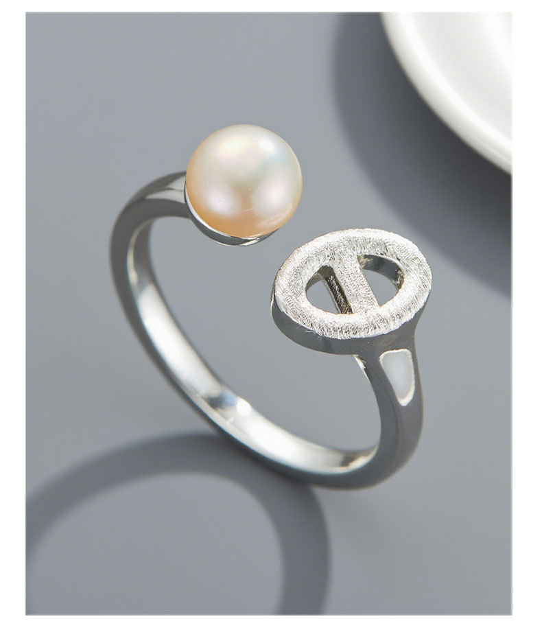 时尚又精致猪鼻子开口戒指手工拉丝淡水珍珠可调节食指戒新款指环 投诉