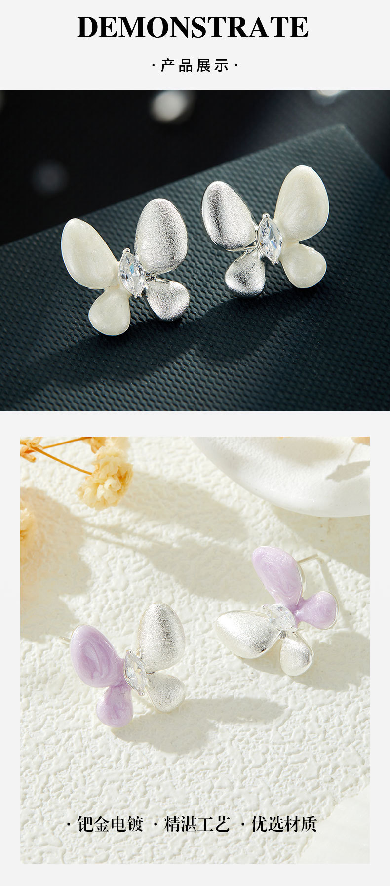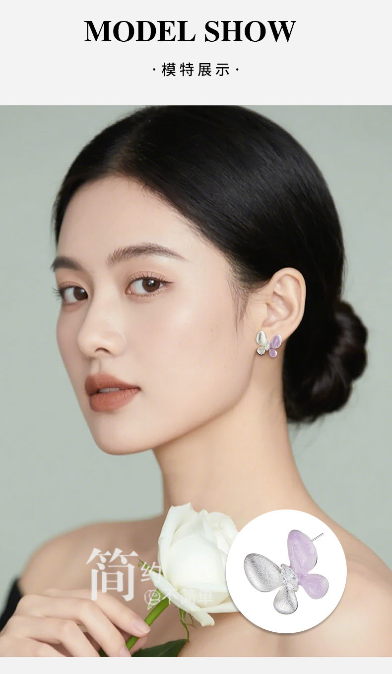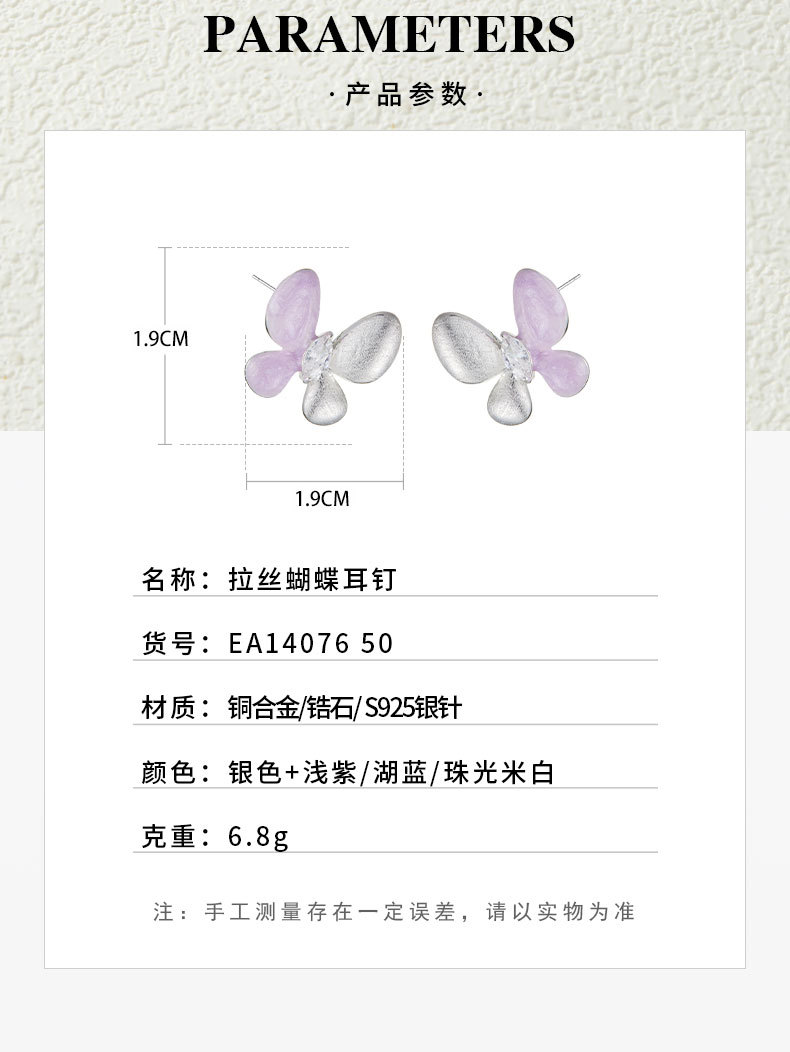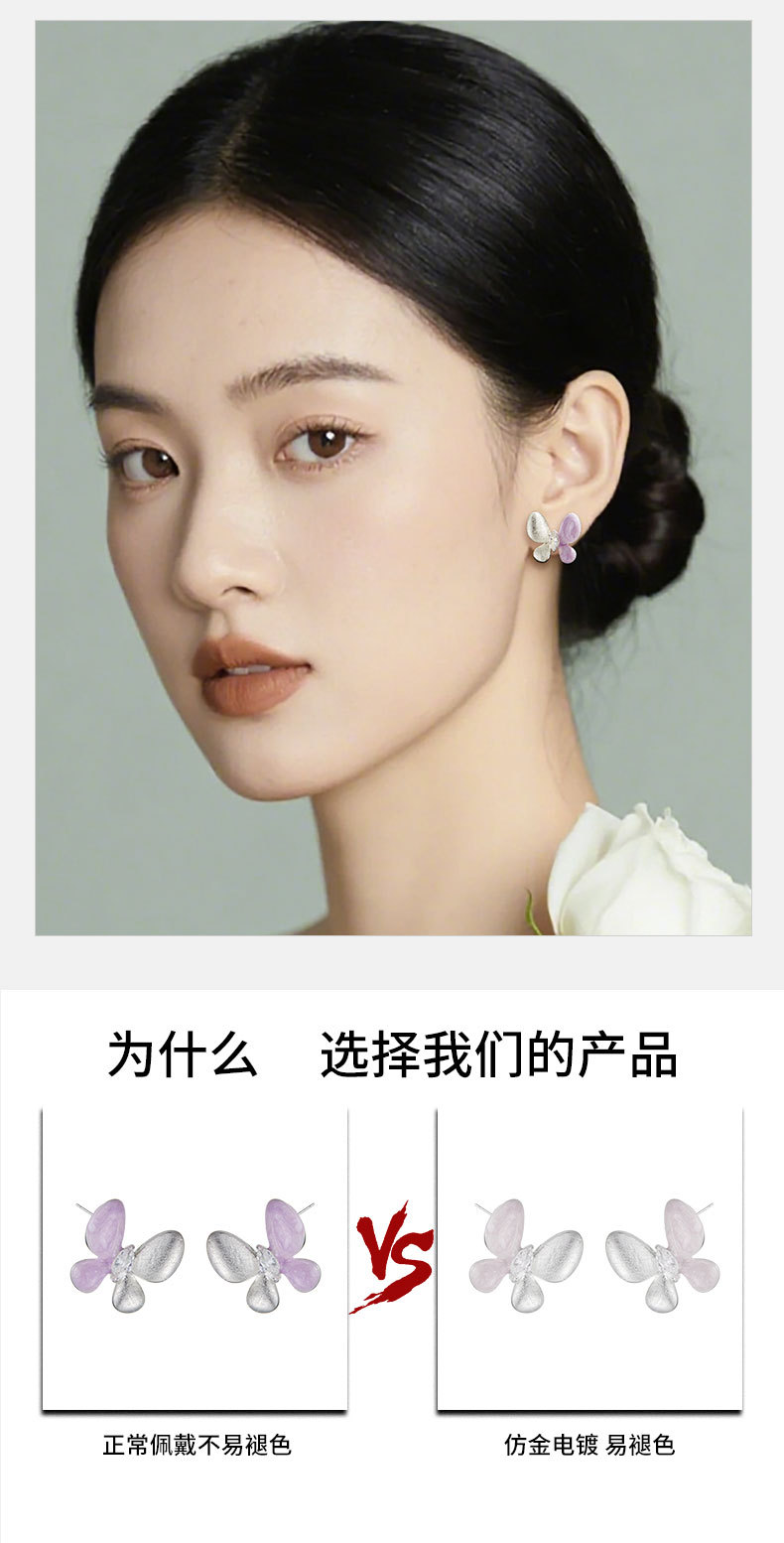 绝美仙气紫银撞色蝴蝶耳钉甜美高级感手工拉丝耳环s925银针女耳饰 投诉