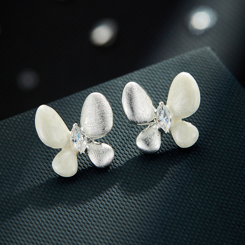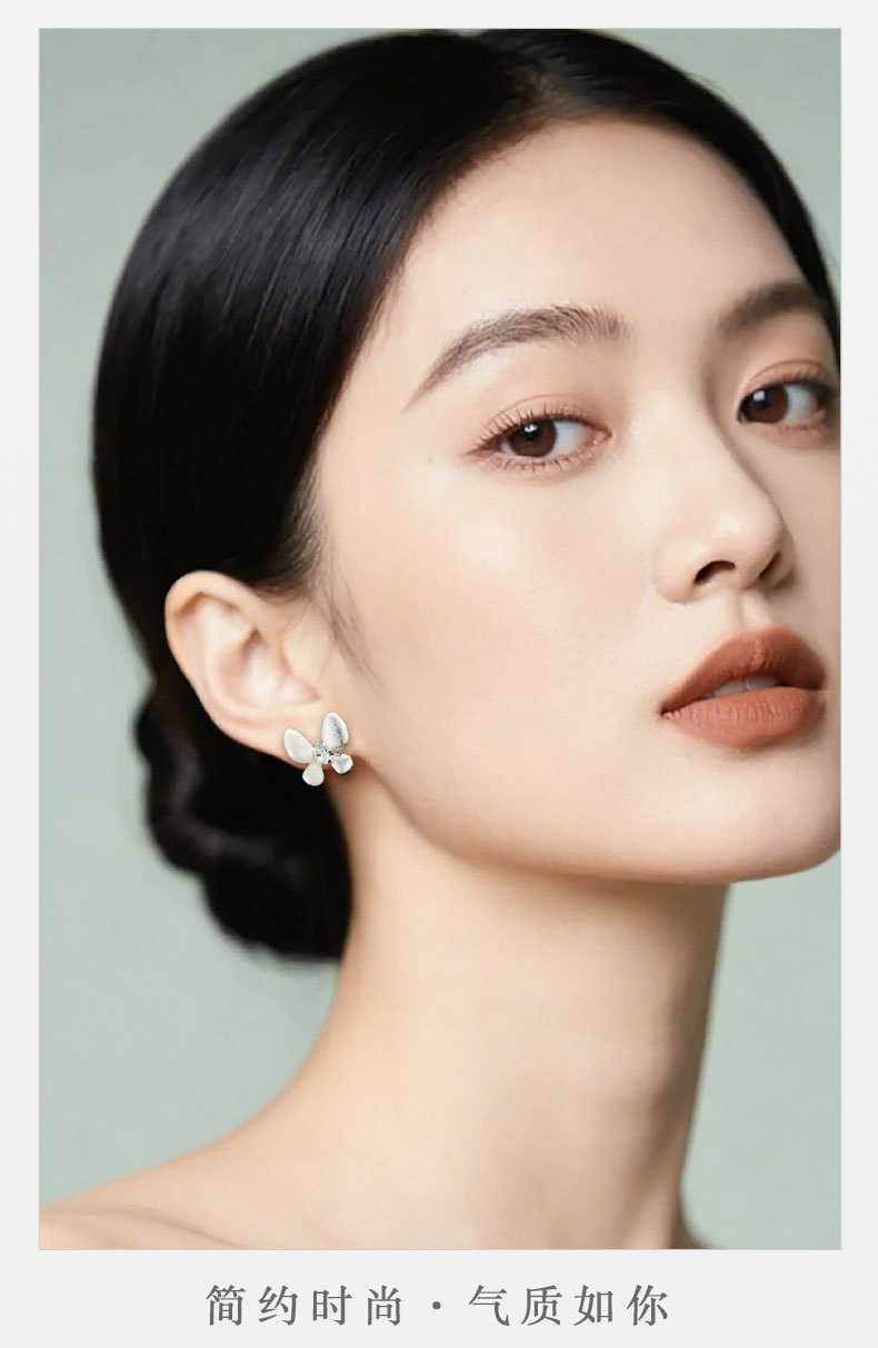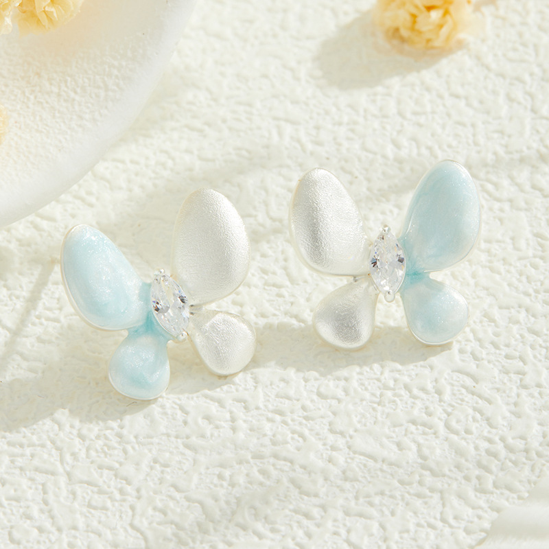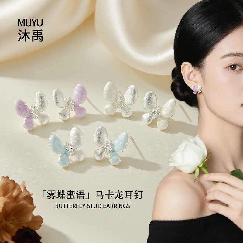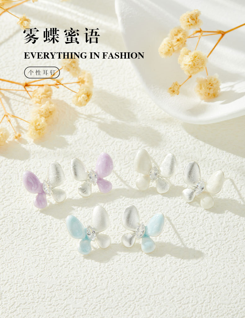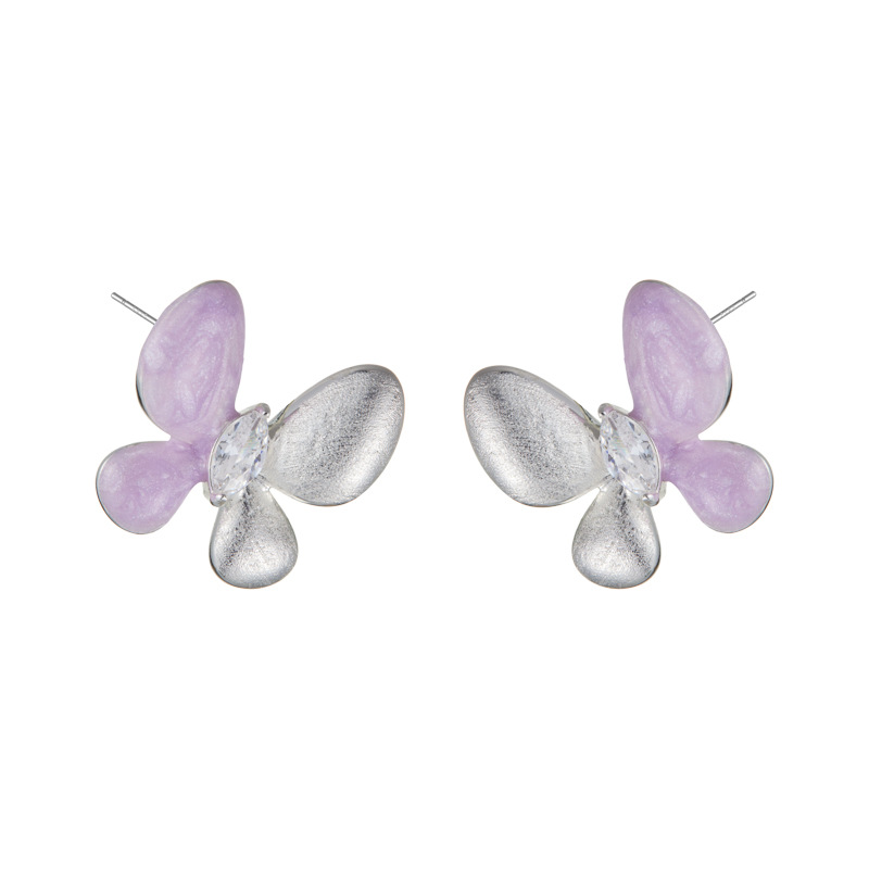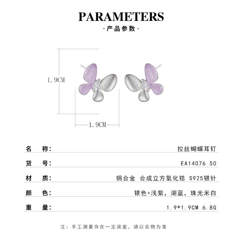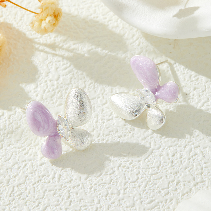绝美仙气紫银撞色蝴蝶耳钉甜美高级感手工拉丝耳环s925银针女耳饰