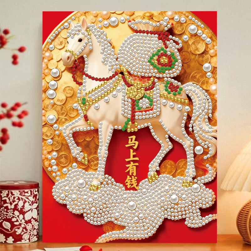2026马年新款珍珠粘贴画马上有钱