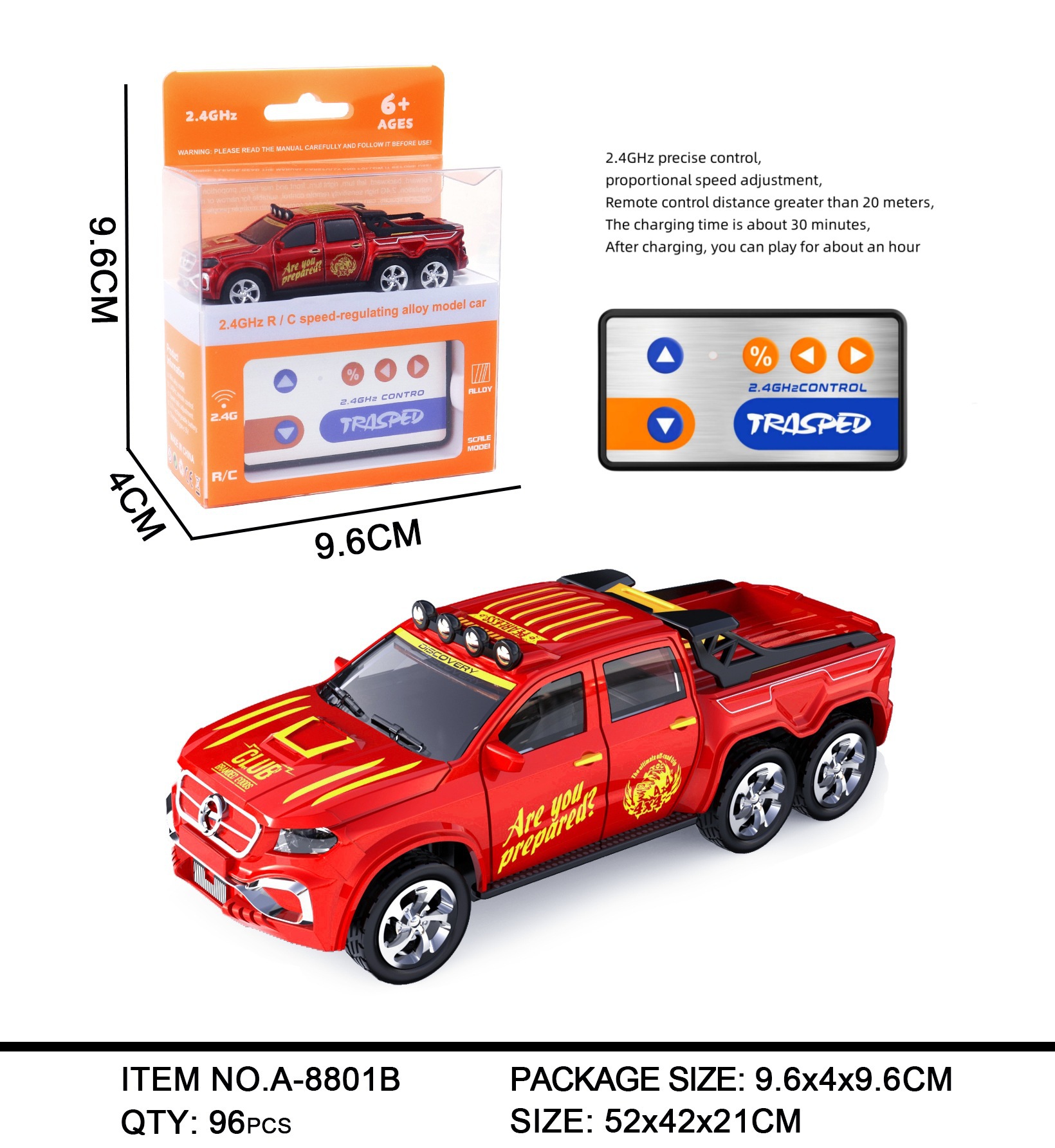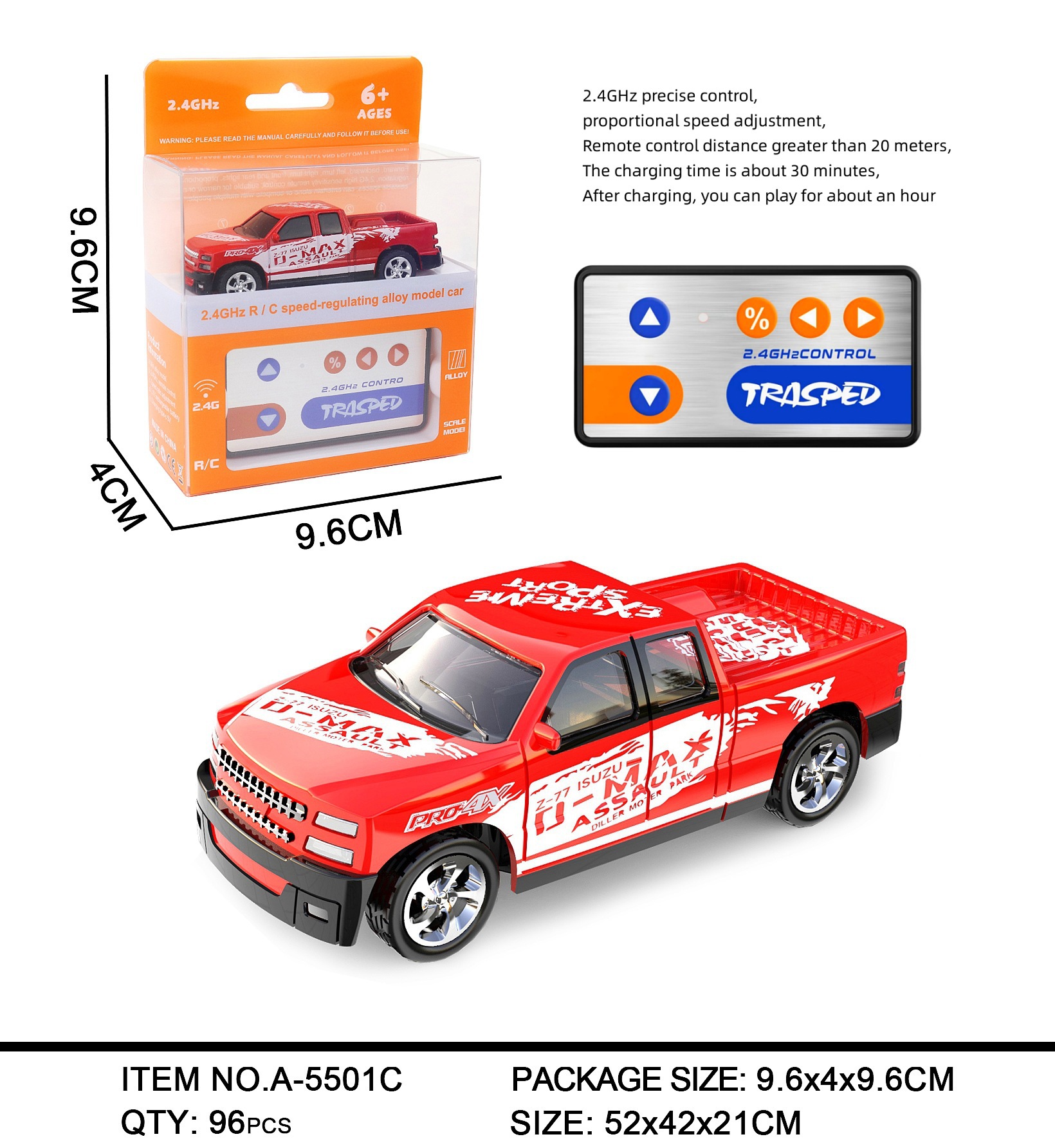三,包装清单: 汽车x1 遥控器x1 充电线x1 说明书x1