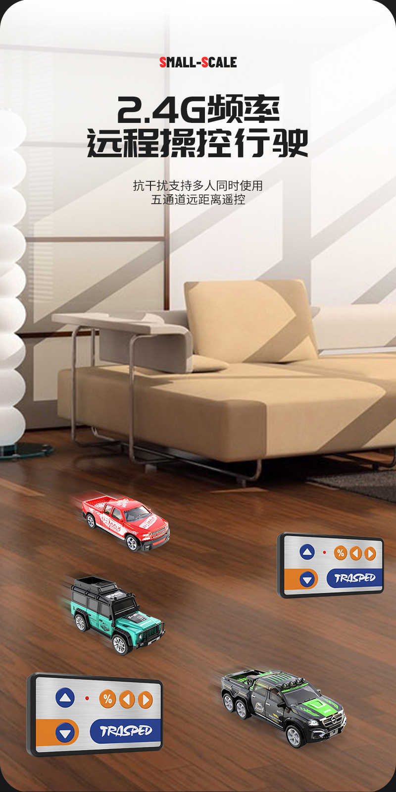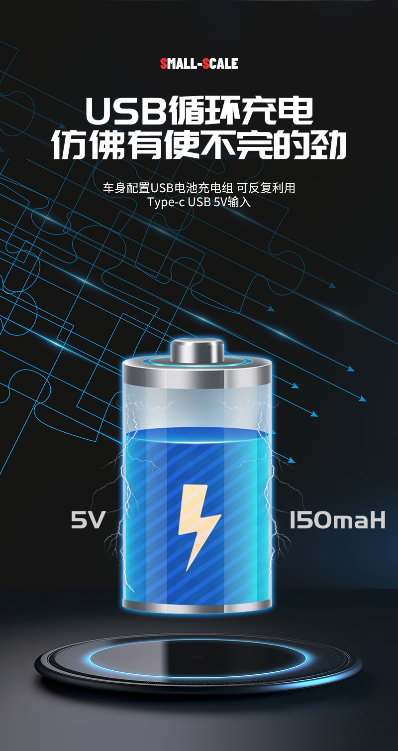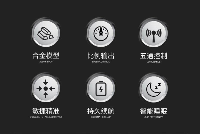 2.4G远距遥控,五通道控制,3.7V160毫安充电电池,1小时以上的超长使用时间.
