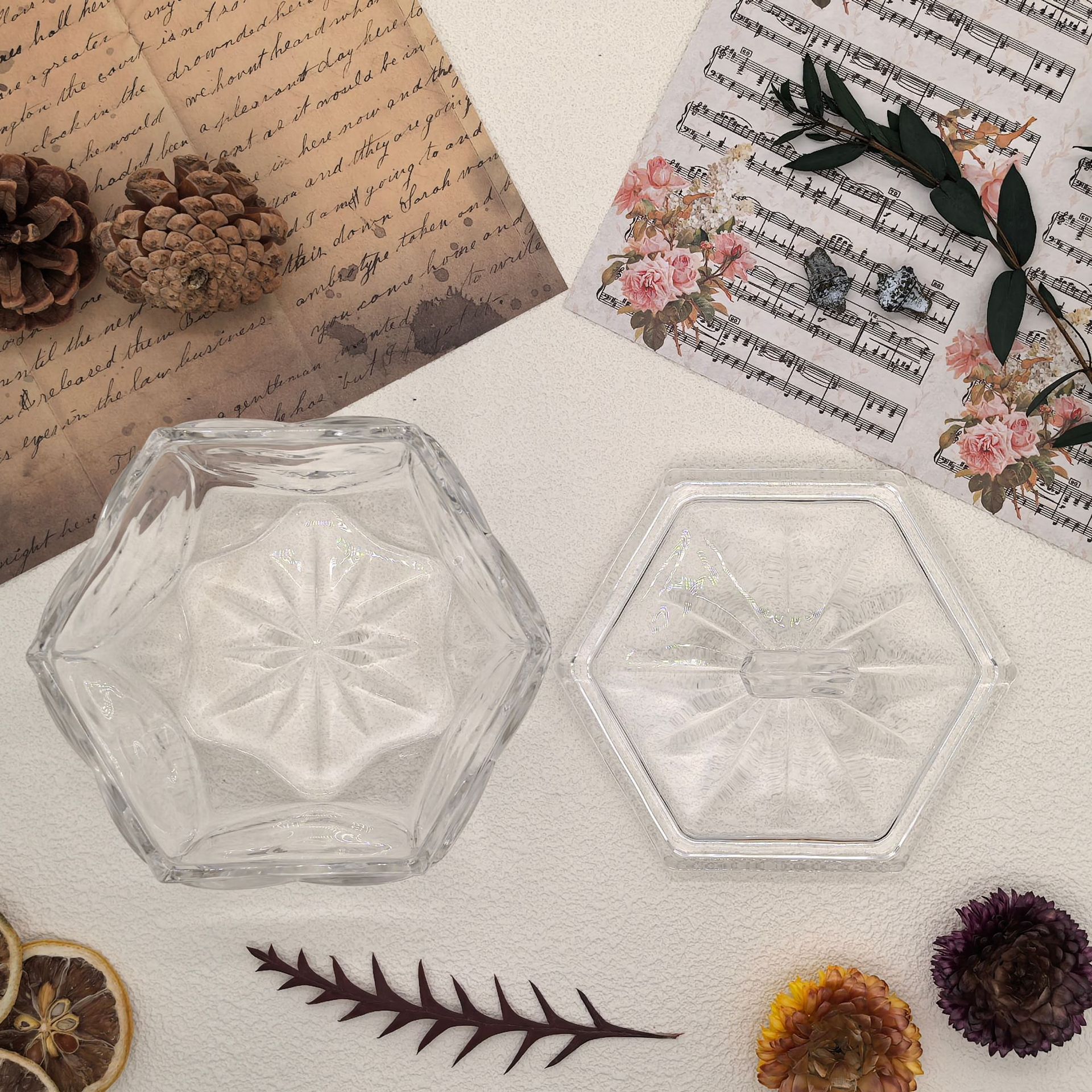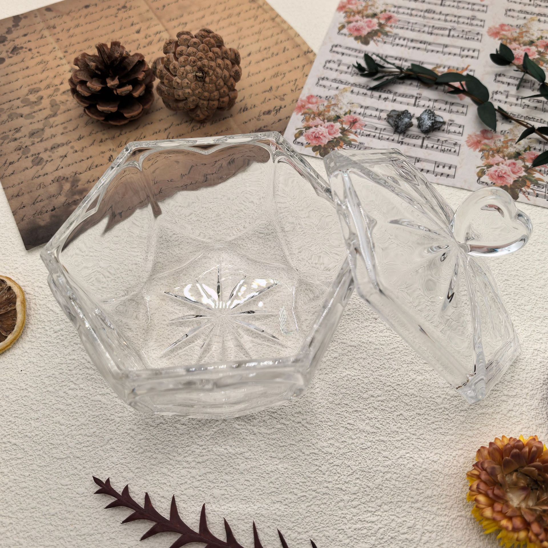 六面心形糖缸 12.5×11.5cm 重约620g 彩盒包装 24个/箱