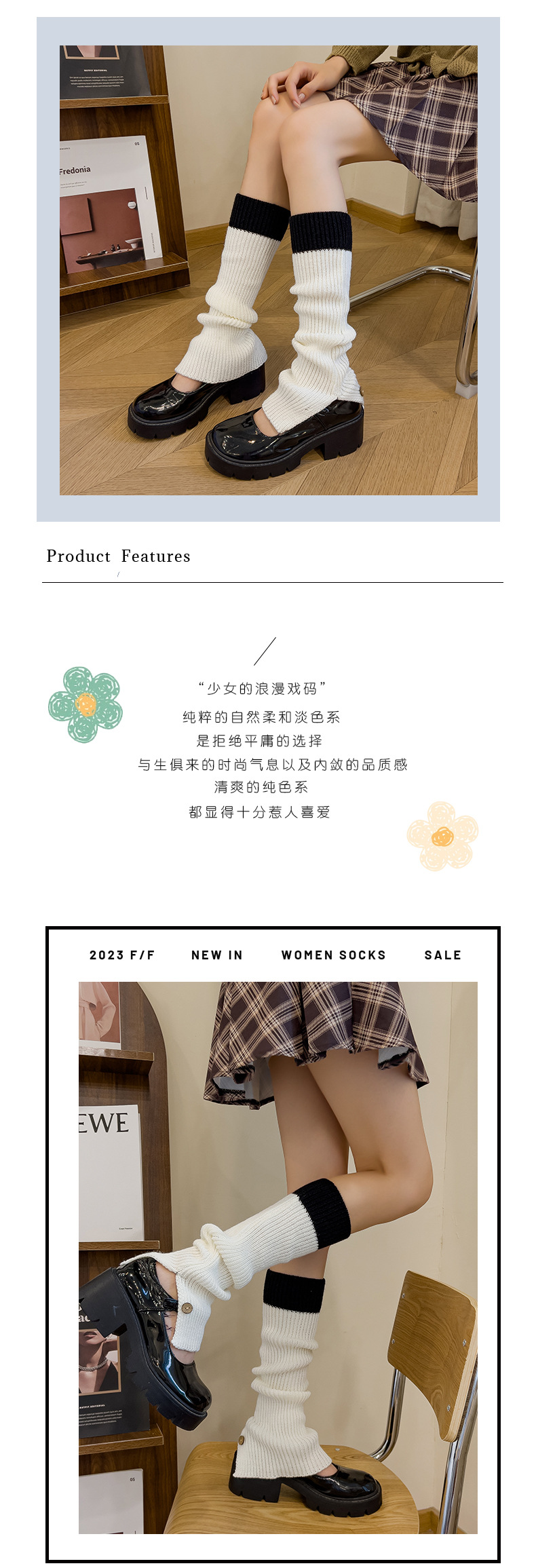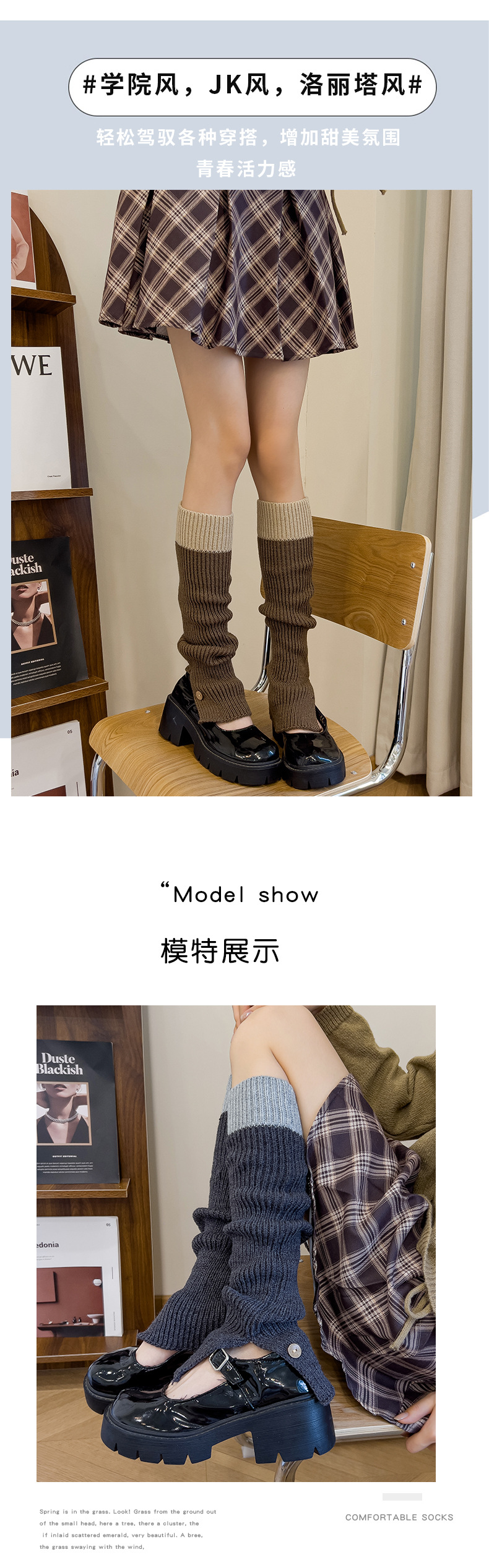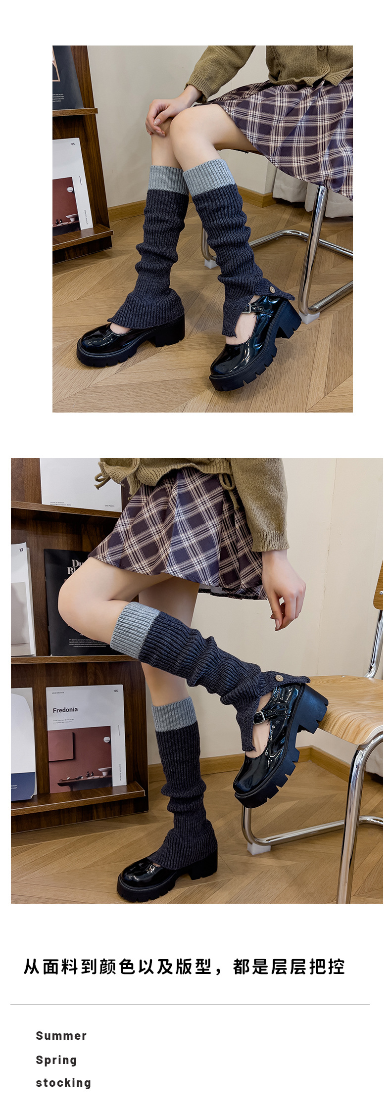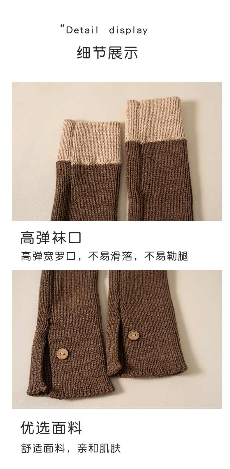 靴尚棉袜套女拼色针织堆堆袜秋冬复古毛线JK纽扣灰色高筒小腿袜 投诉
