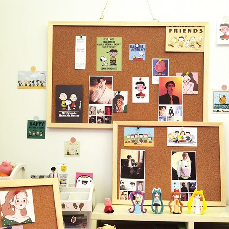 20x30ins单面软木板照片墙板贴墙木质留言板实木边框装饰展示架