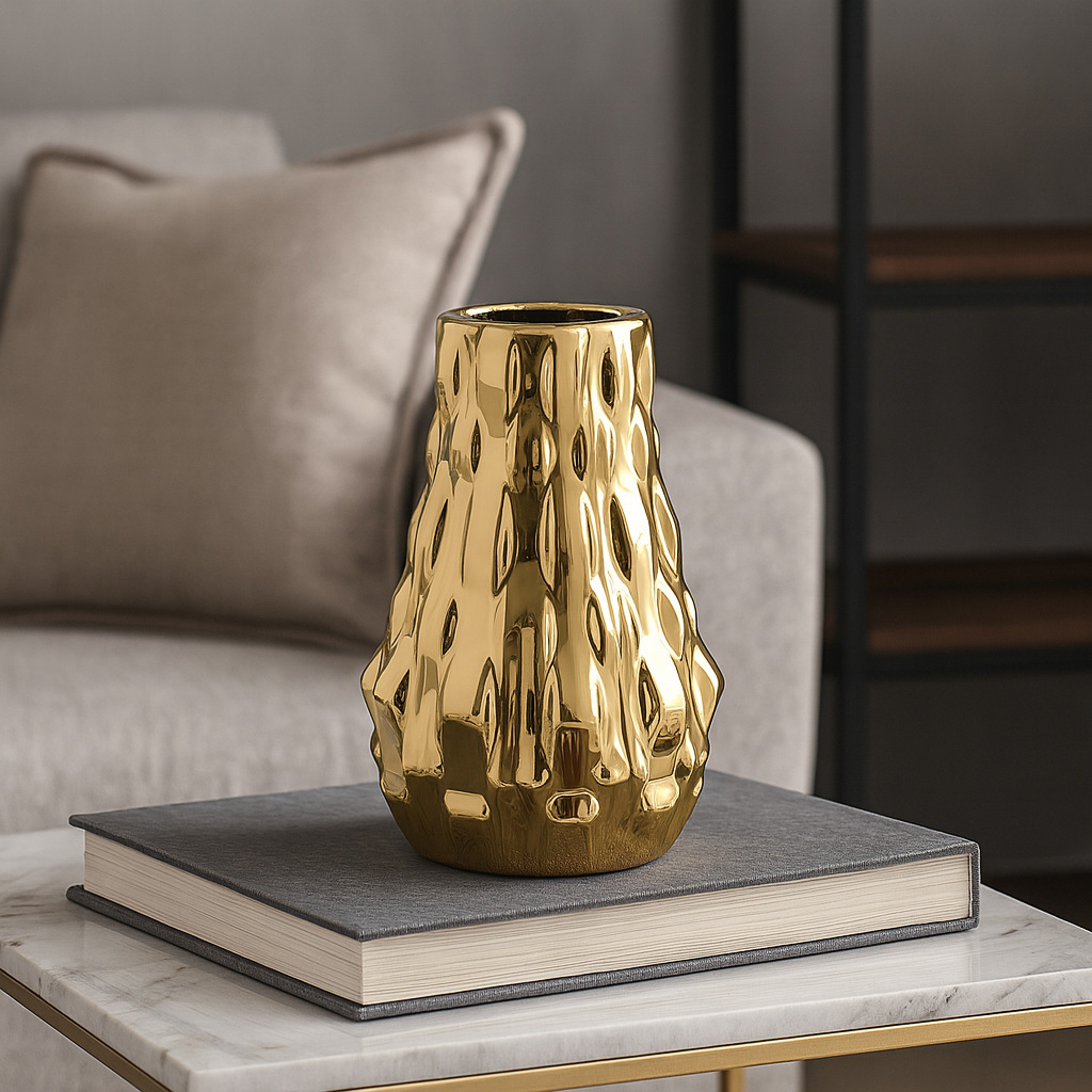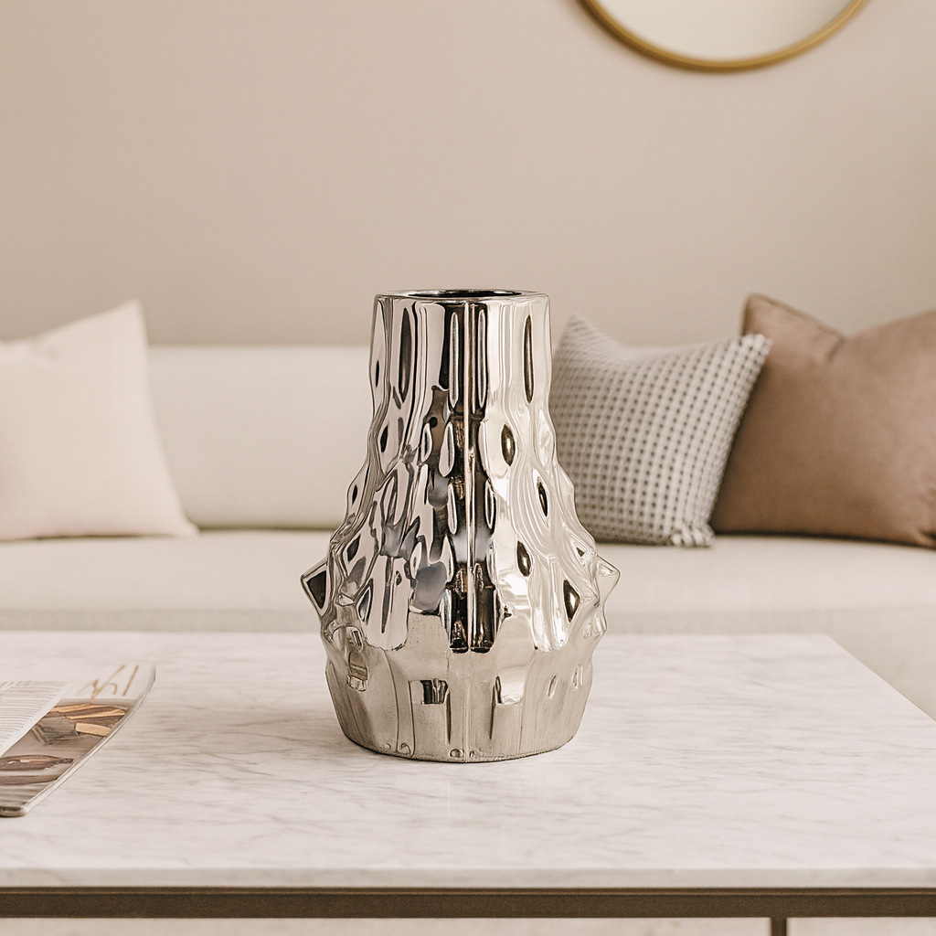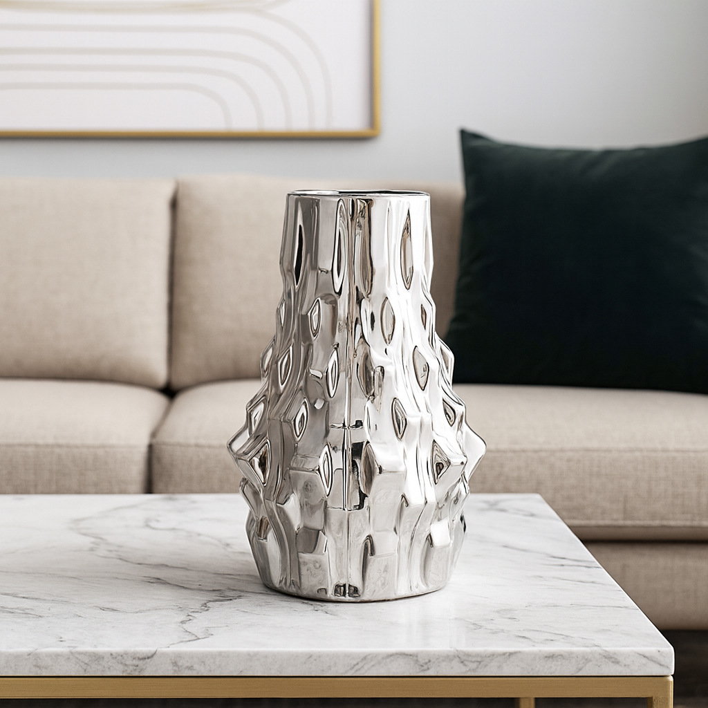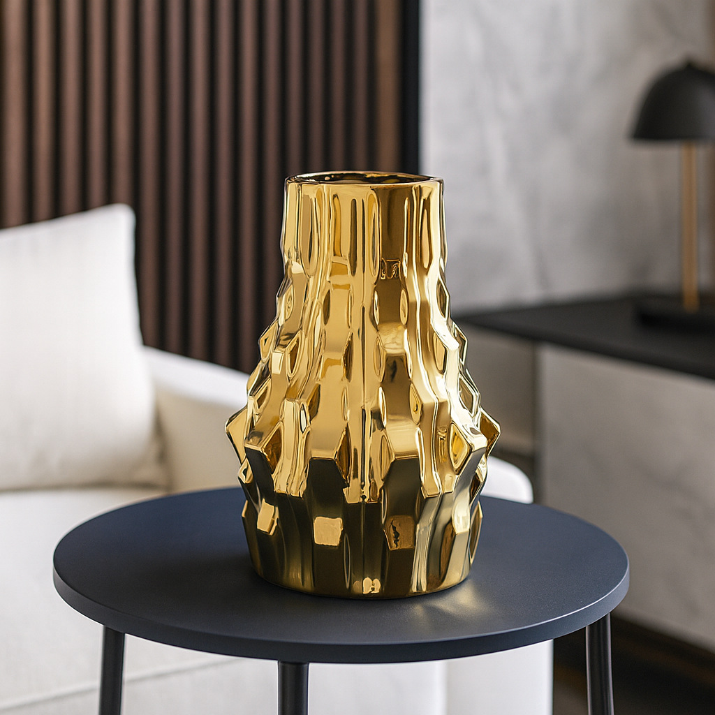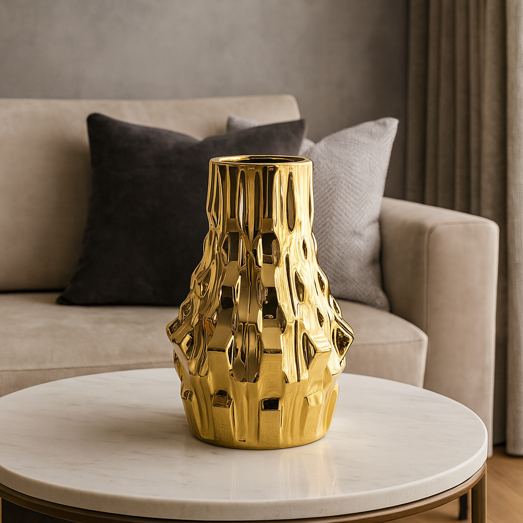 电镀陶瓷花瓶现代简约异形样板间创意花器干花插客厅电视柜摆件 English | 投诉