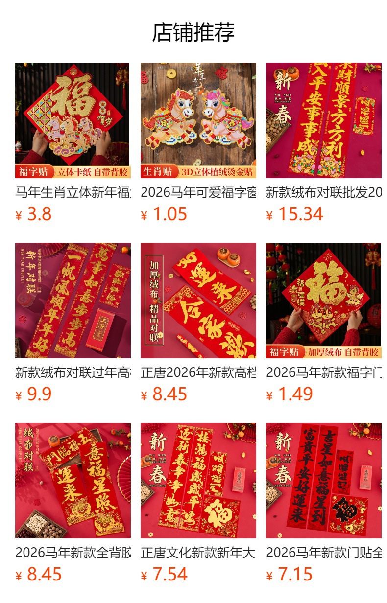 | 1.6#词句横批随机(词句平均发,详询客服) | ¥1680 | 15000副可售 |