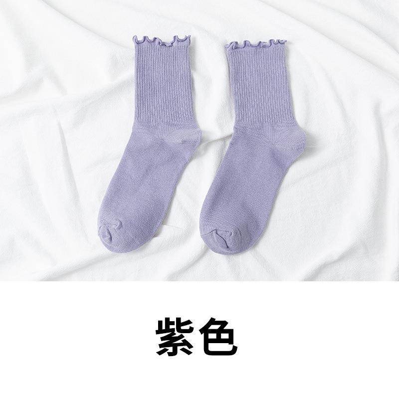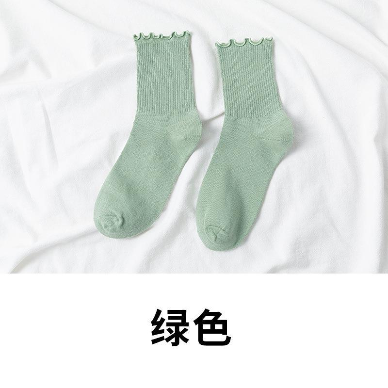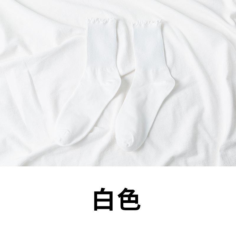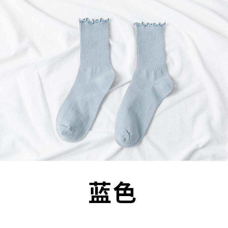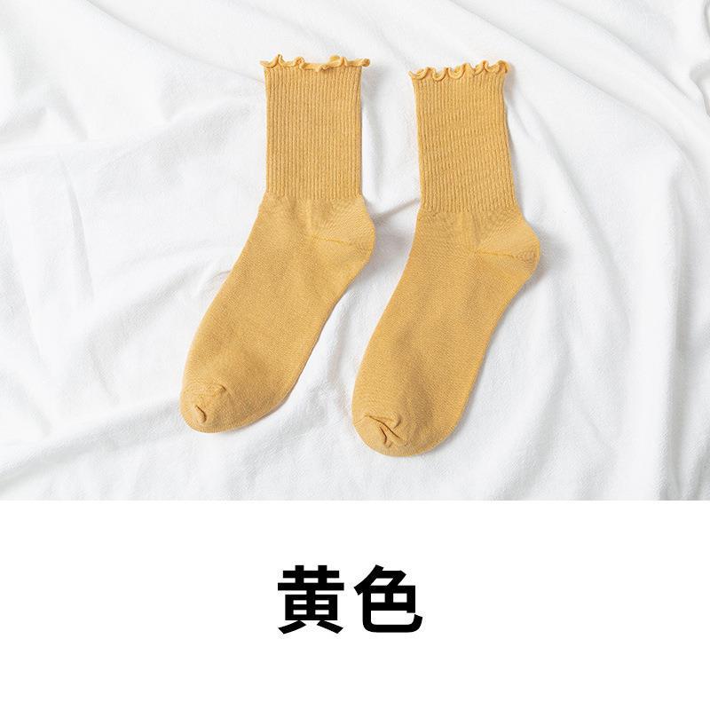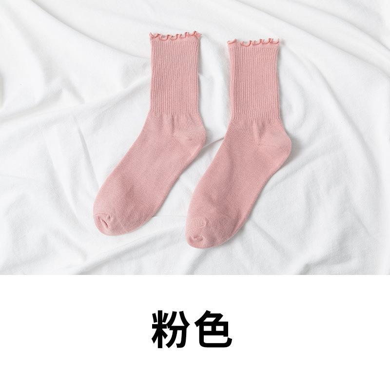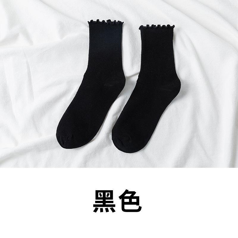 秋冬新款袜子女jk日系可爱棉袜子木耳边中筒纯色女袜ins潮少女风