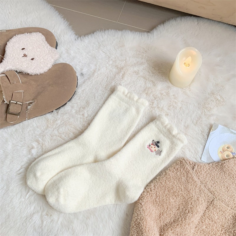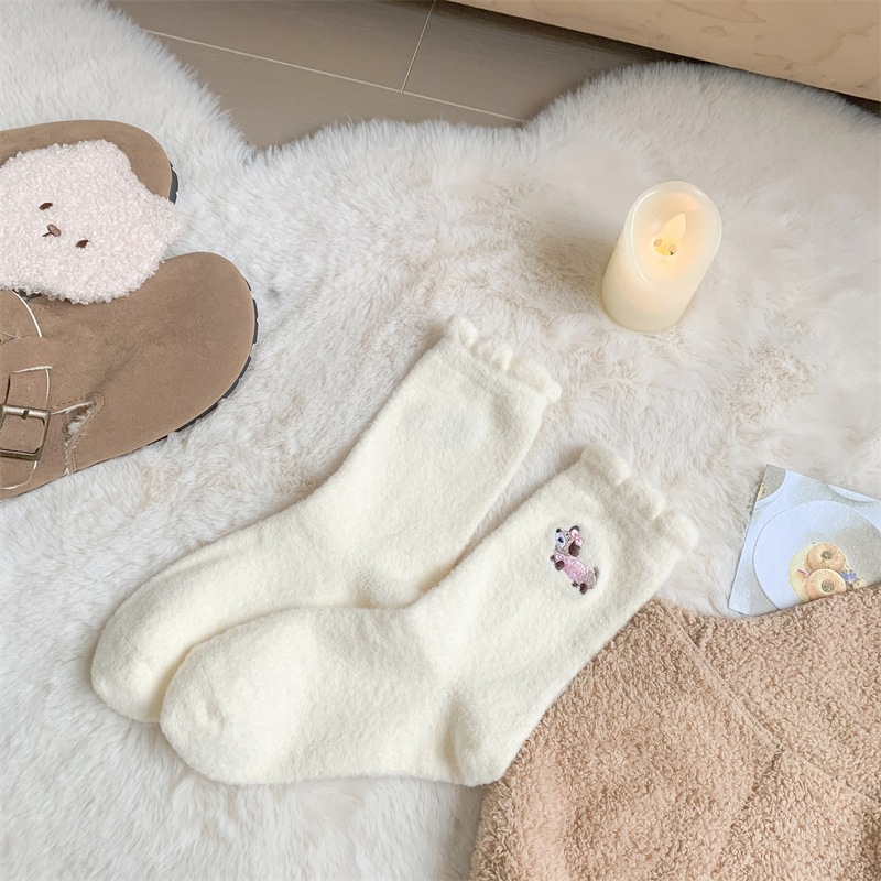 可爱俏皮袜子女中筒袜秋冬加绒加厚保暖袜日系卡通毛绒腊肠狗长袜