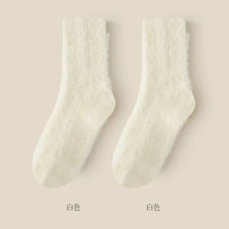 秋冬黑白简约毛绒袜子厚实女袜水貂绒中筒袜居家保暖百搭毛毛袜 投诉