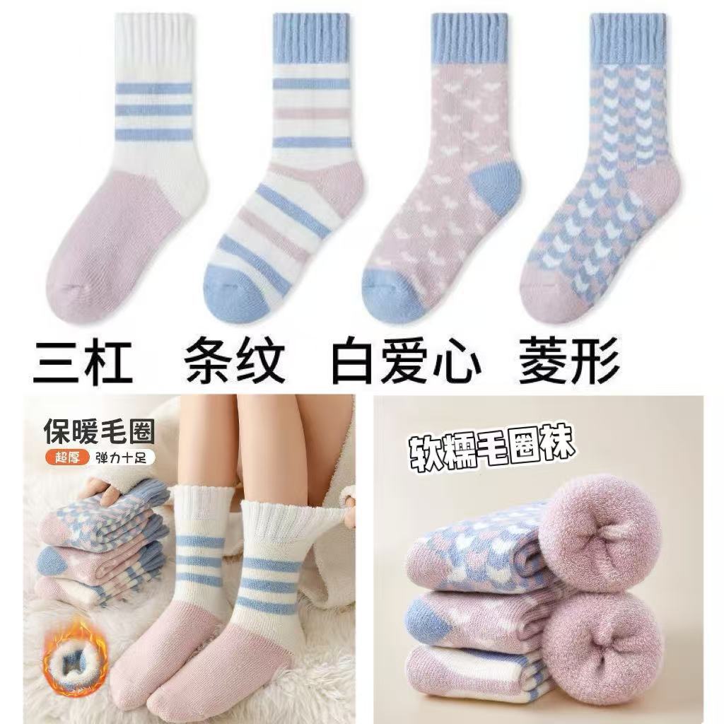 毛绒秋冬款厚袜子女中筒袜加绒加厚保暖毛圈睡眠地板袜超厚女袜