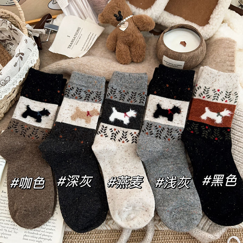 复古袜子女中筒袜秋冬款加厚加绒保暖毛绒可爱小狗冬天长筒袜