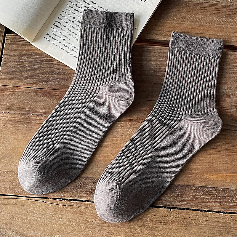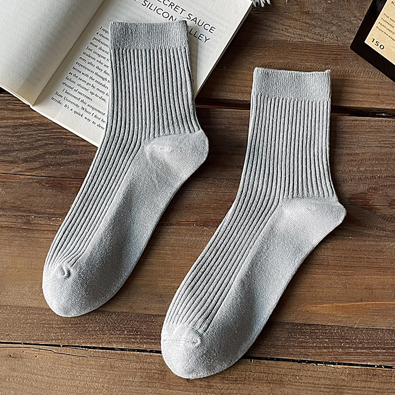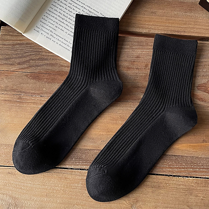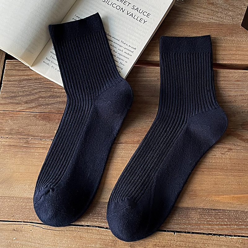 双针纯棉袜子男秋冬中筒袜 男士纯色全棉吸汗长筒袜 诸暨商务男袜