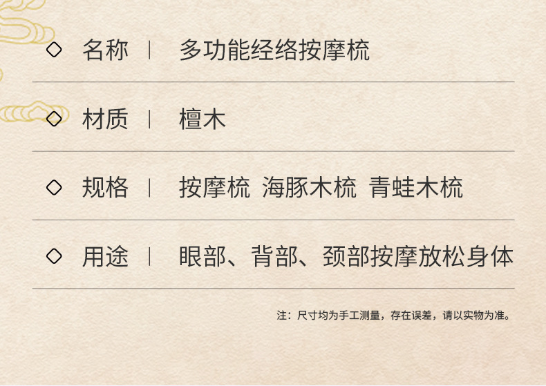 | 金丝檀木三用多齿梳 | ¥600 | 96995件可售 |