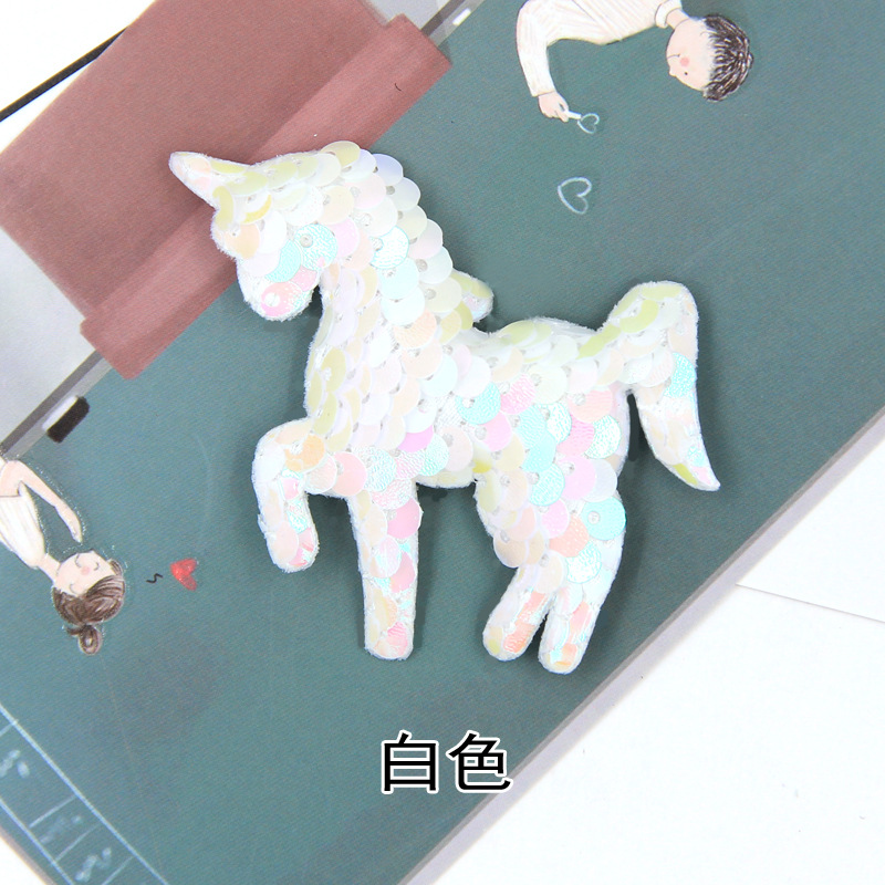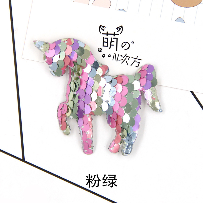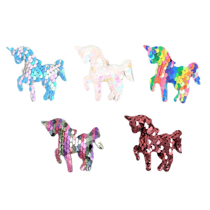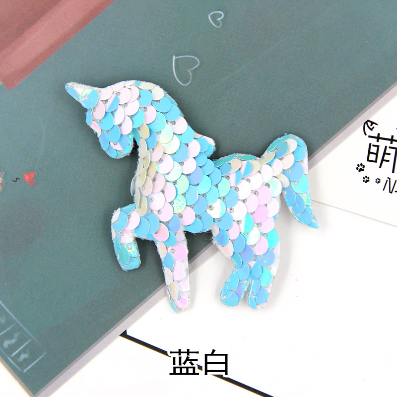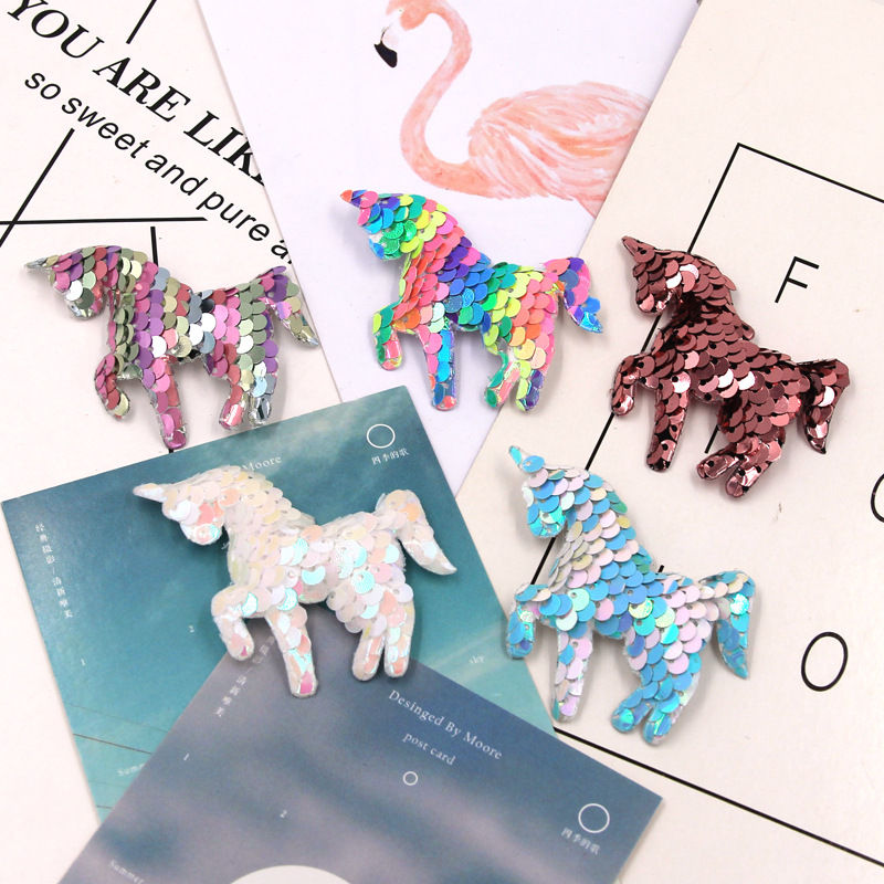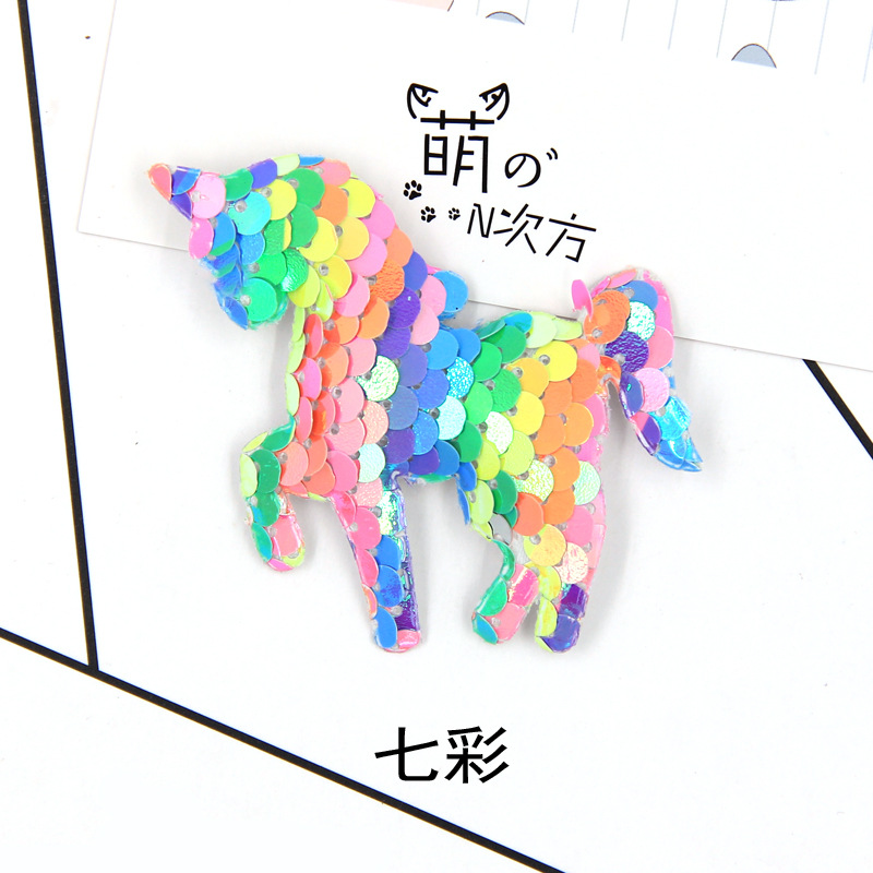 【名称】翻面鱼鳞亮片七彩独角兽配件diy手机壳材料儿童双面独角兽配饰