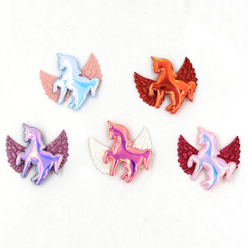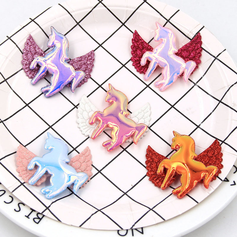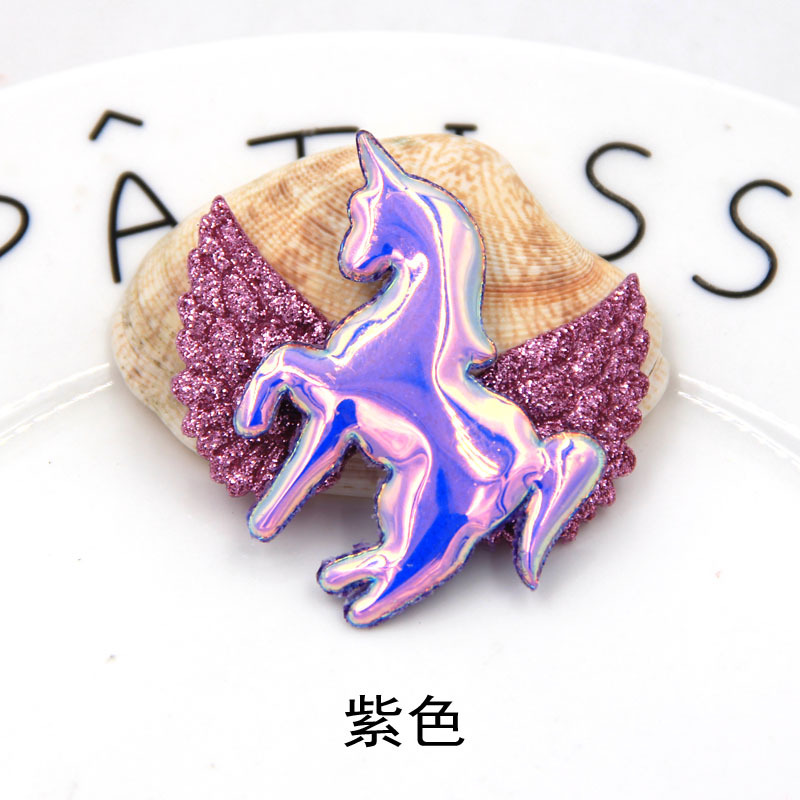 【名称】热销儿童卡通渐变幻彩独角兽发夹材料梦幻翅膀天马手机壳diy装饰