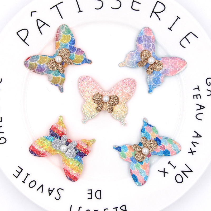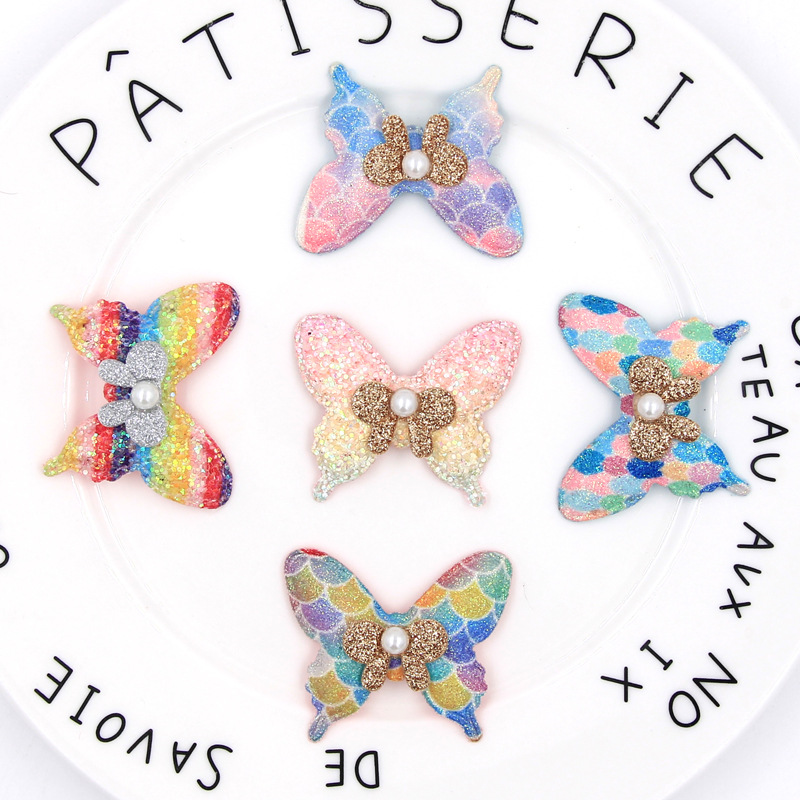 【名称】2020年新款金粉亮片服装配饰韩版手工diy辅料 七彩卡通蝴蝶结配件