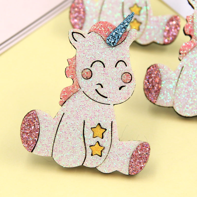 【名称】日系新款卡通梦幻独角兽服装配件亚马逊热销彩色金粉亮片发饰配件