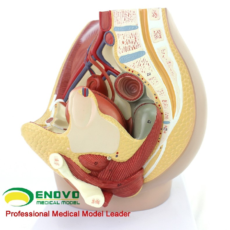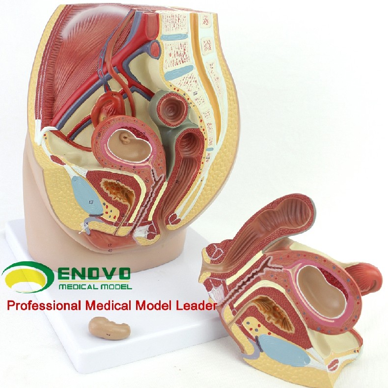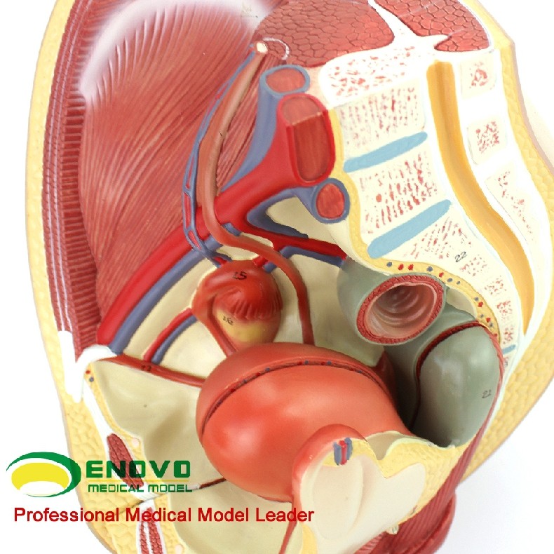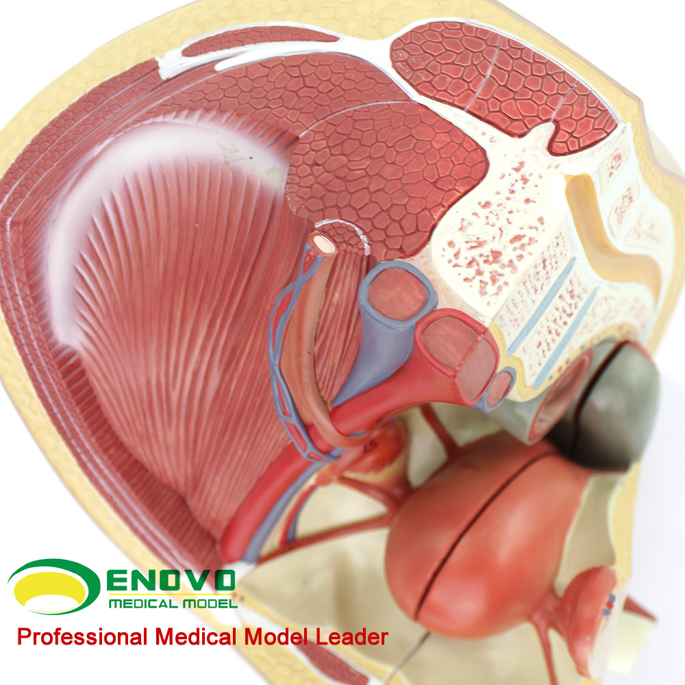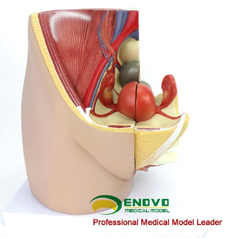 这个真人大小的模型,可拆分三部分组成,展示了女性盆腔系统的所有重要结构,并且非常详细地展示了腹腔和骨盆肌,女性泌尿生殖系统的内部结构,并且在子宫内部加了一个8周内的胎儿,展现了胎儿和子宫的关系,非常详细描绘。全部手工上色,并且配有数字指示标识