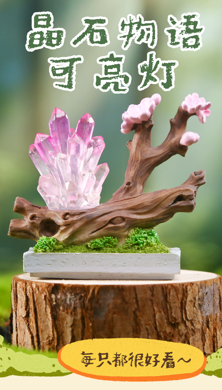 晶石物语盲盒创意设计水晶可亮灯桌面摆件多款式精美晶石盲盒批发 English | 投诉