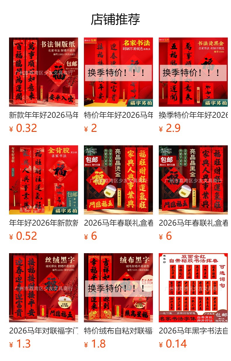 | 1.8米#字句2.新春大吉鸿运开,佳年顺景财源来(实长170*28CM) | ¥410 | 45副可售 |