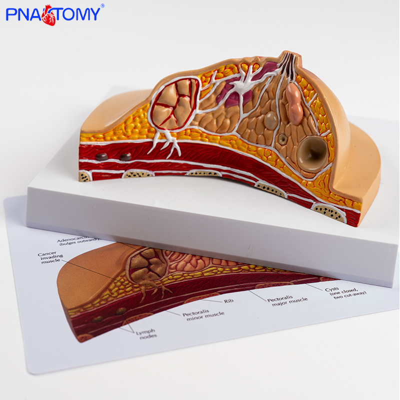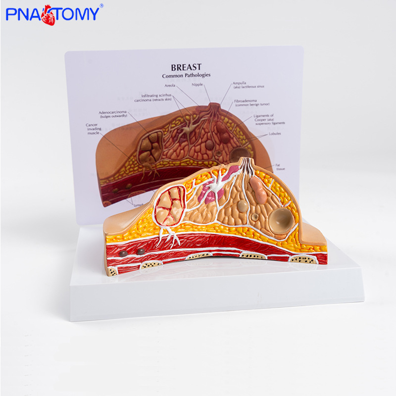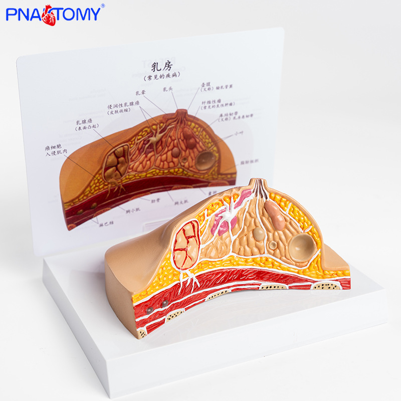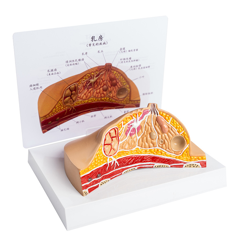 产品简介:此款模型展示了乳房常见的多种病理结构,配有中英文说明卡片,方便教学。