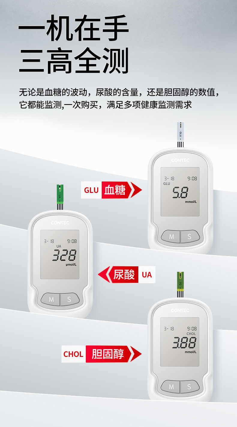 康泰血糖尿酸分析仪医用血糖尿酸胆固醇三合一检测仪定制客制跨境专供出口 English | 投诉