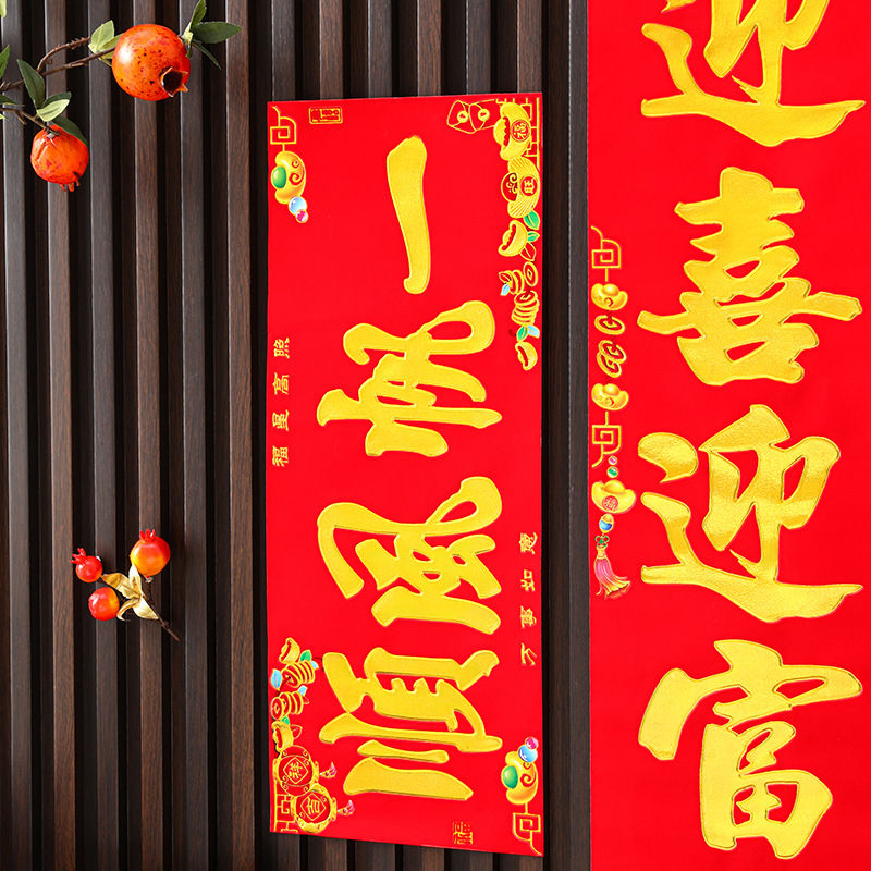 〖产品名称〗:《蒸蒸日上》植绒烫金对联