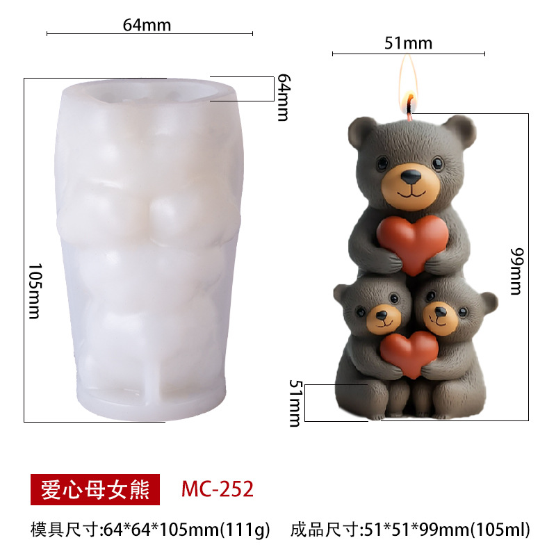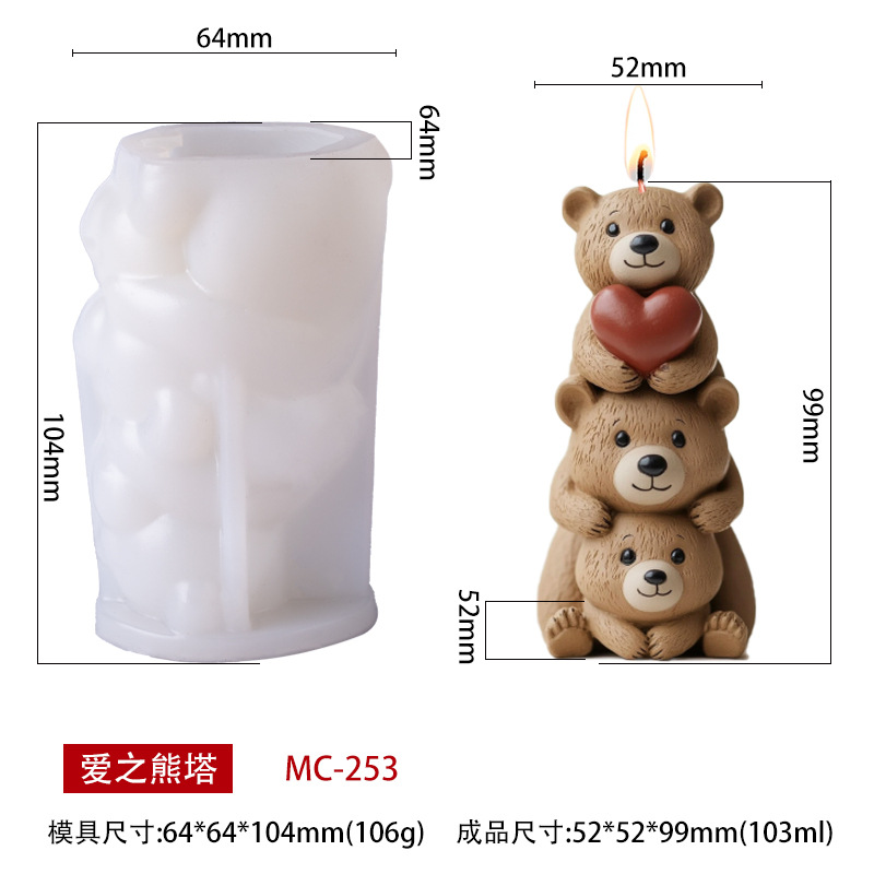 叠叠熊香薰蜡烛硅胶模具DIY摆件手工石膏扩香石磨具源头工厂