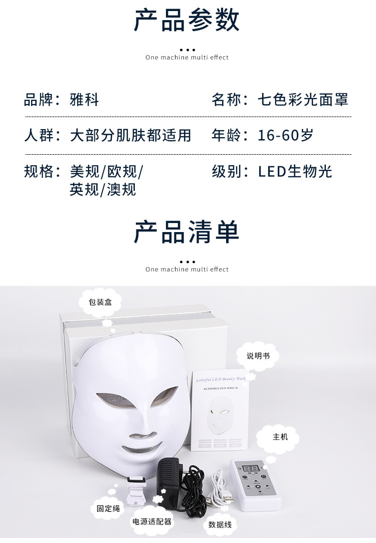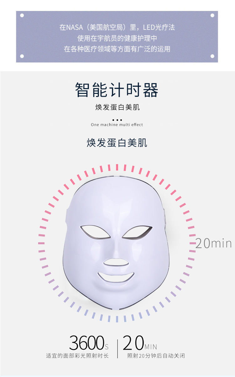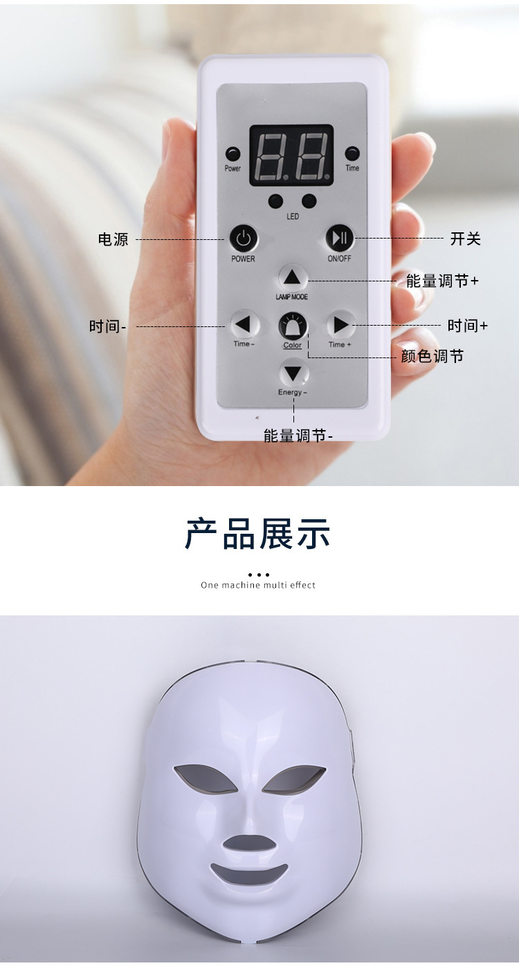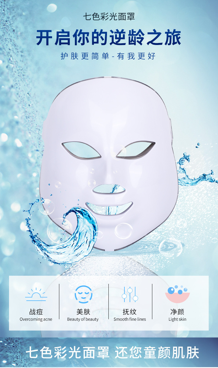 led彩光美容面部面罩 光子嫩肤七色光谱仪 家用脸部面膜美容仪 English | 投诉