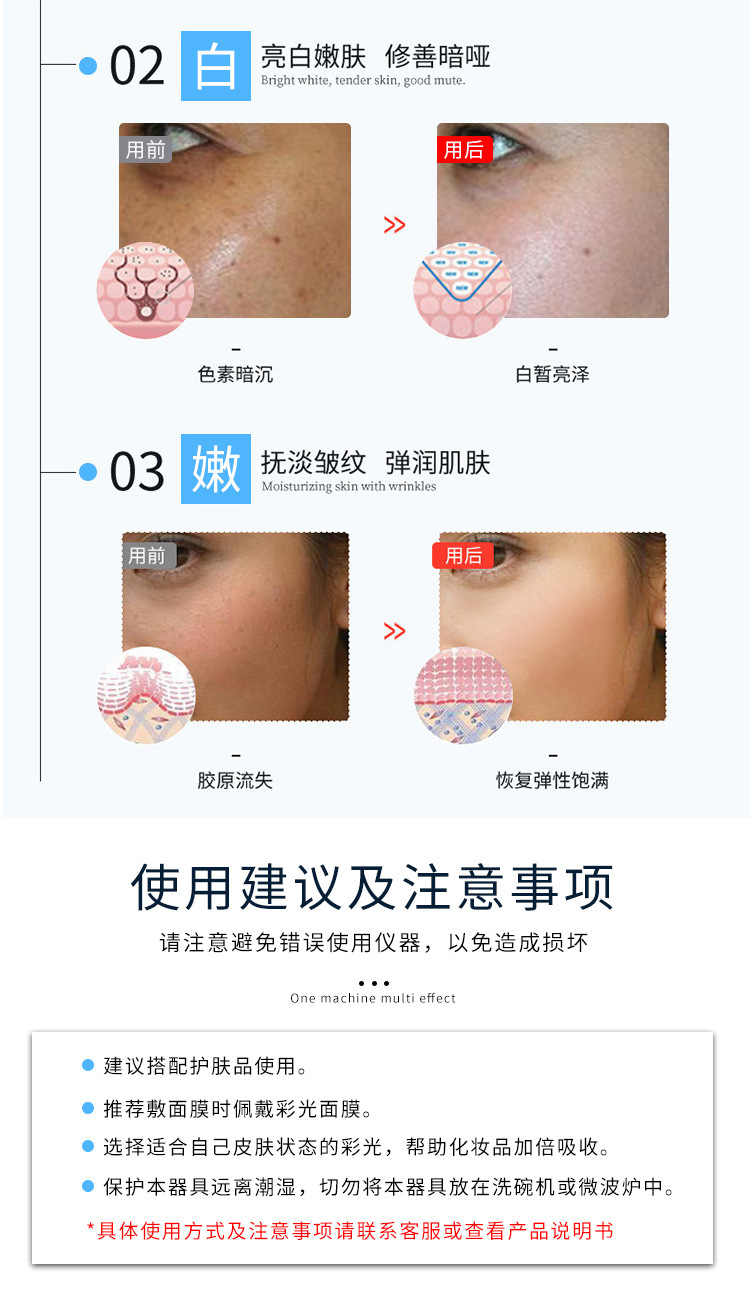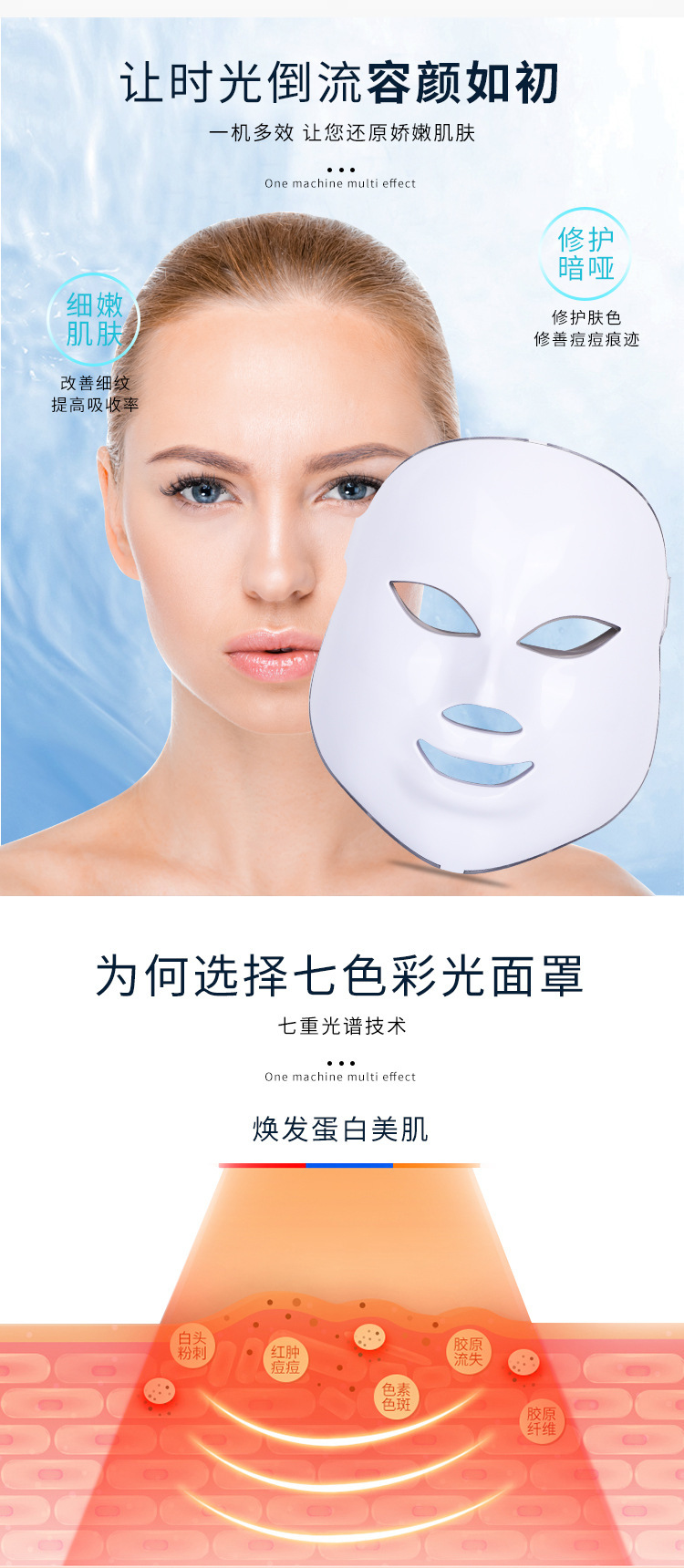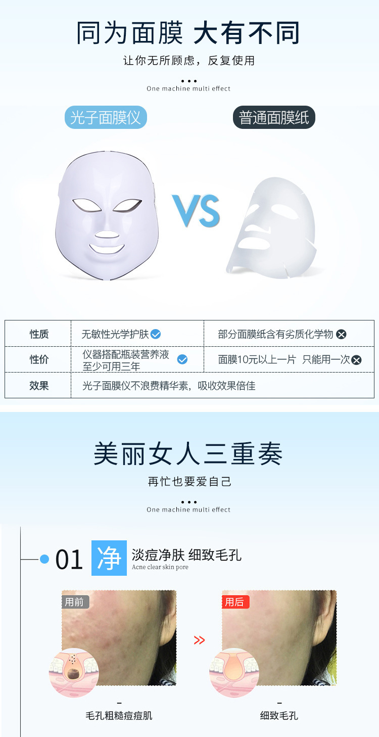 led彩光美容面部面罩 光子嫩肤七色光谱仪 家用脸部面膜美容仪 English | 投诉