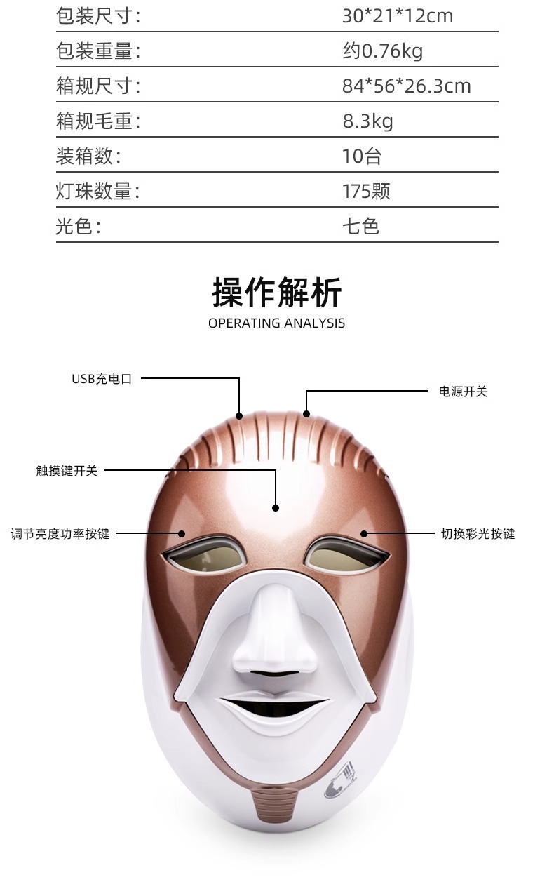 新款跨境美容仪脸部家用充电LED触屏嫩肤面罩七彩光子嫩肤仪 English | 投诉