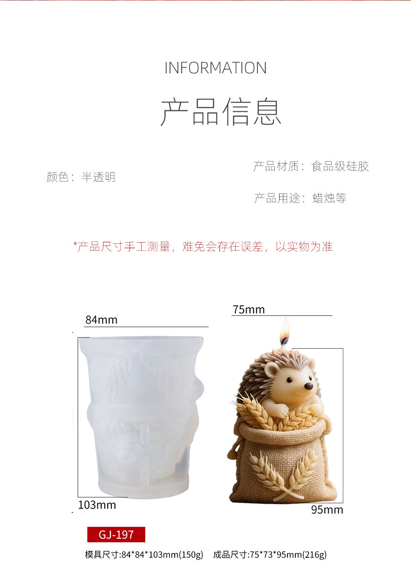刺猬小麦袋香薰蜡烛硅胶模具diy刺猬手工皂扩香石摆件 投诉