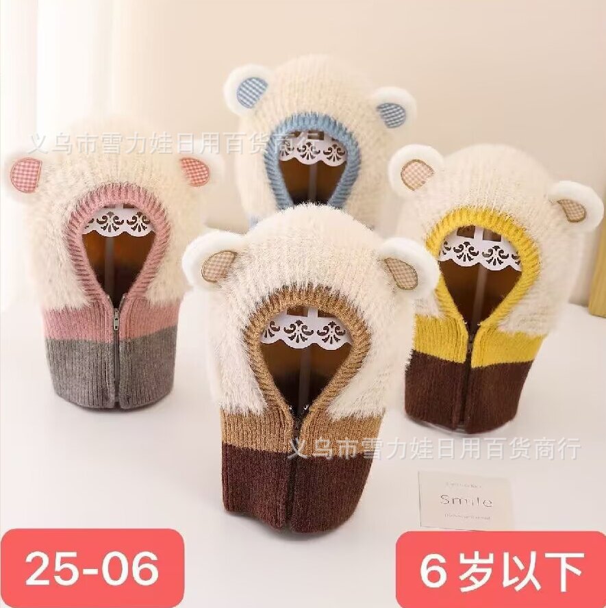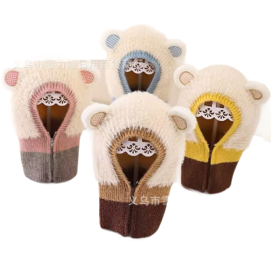 秋冬婴儿可爱拼色保暖护耳帽子男女宝宝针织防风毛线帽套头帽护脖 English | 投诉