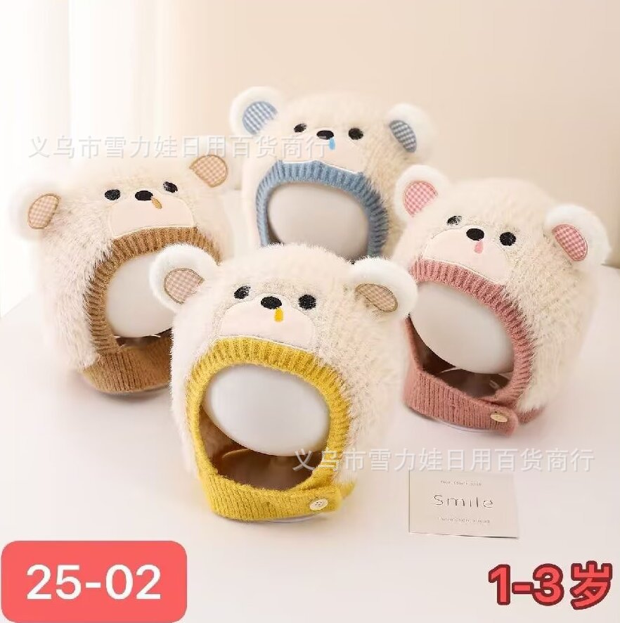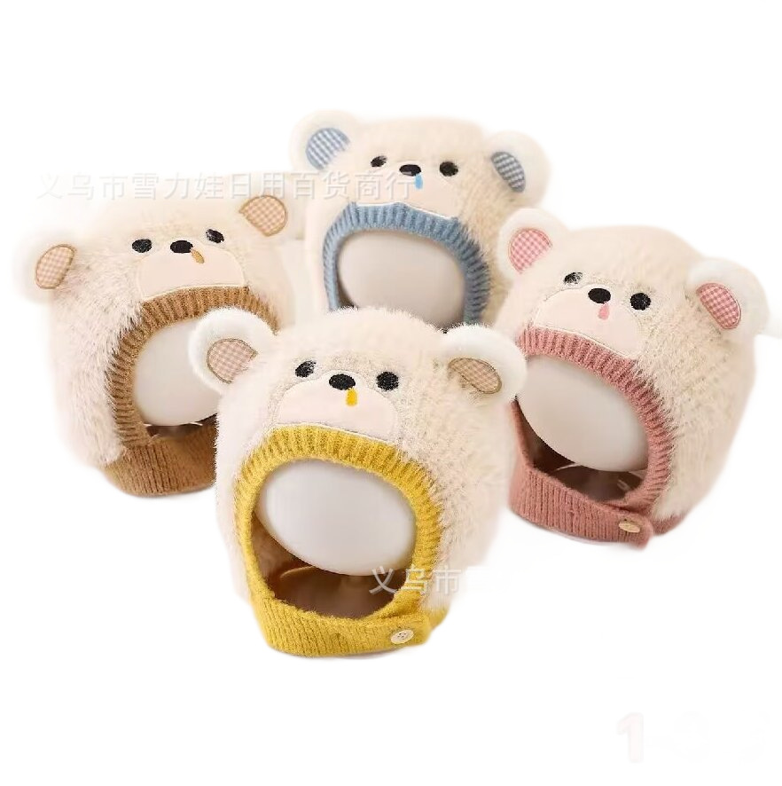 婴儿帽子秋冬季宝宝毛线帽可爱超萌小熊加厚保暖1-3岁护耳帽子 English | 投诉