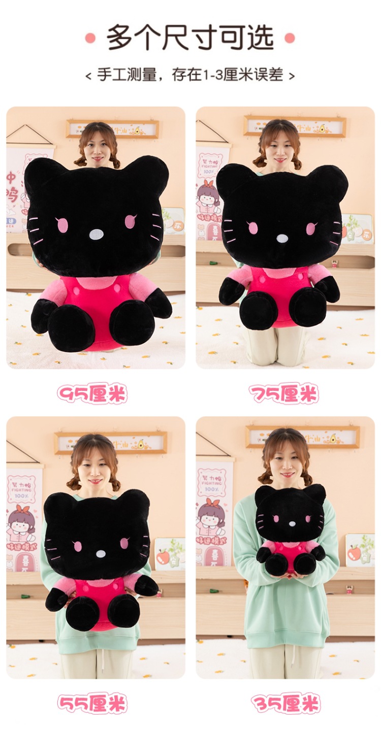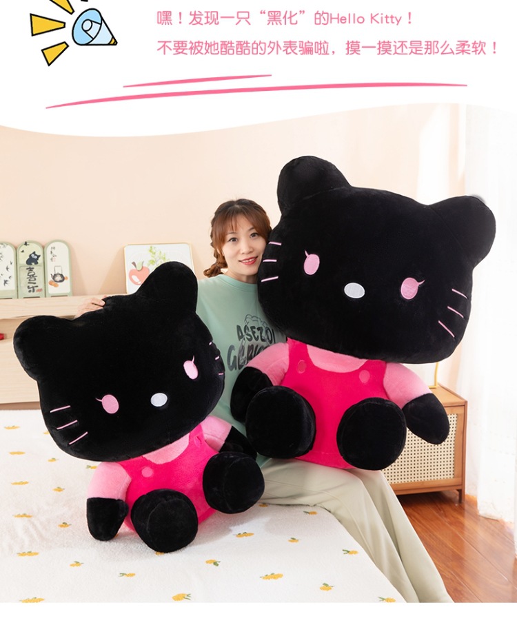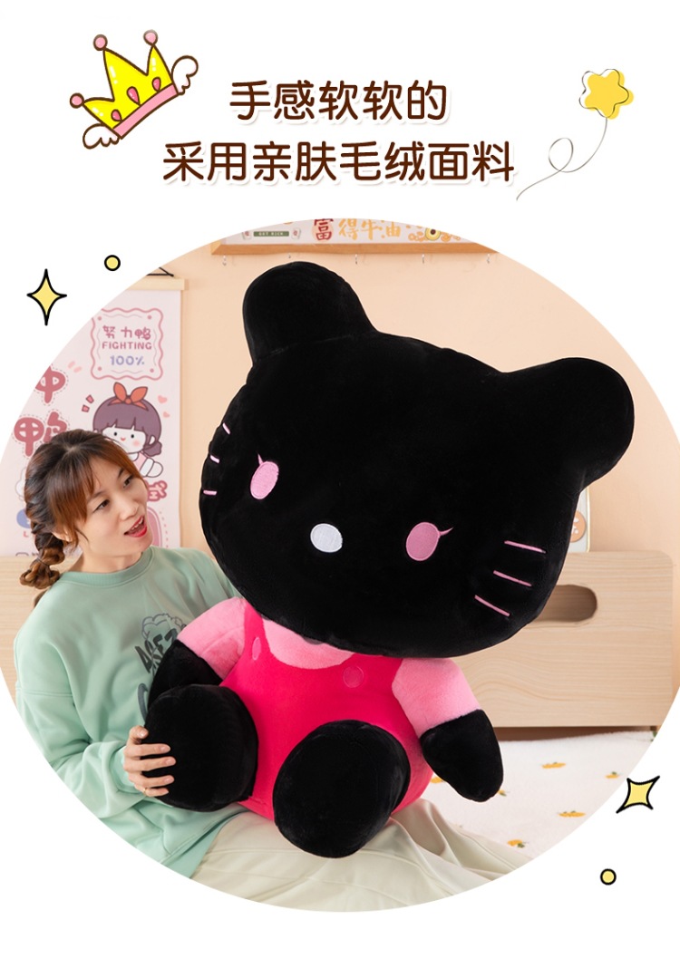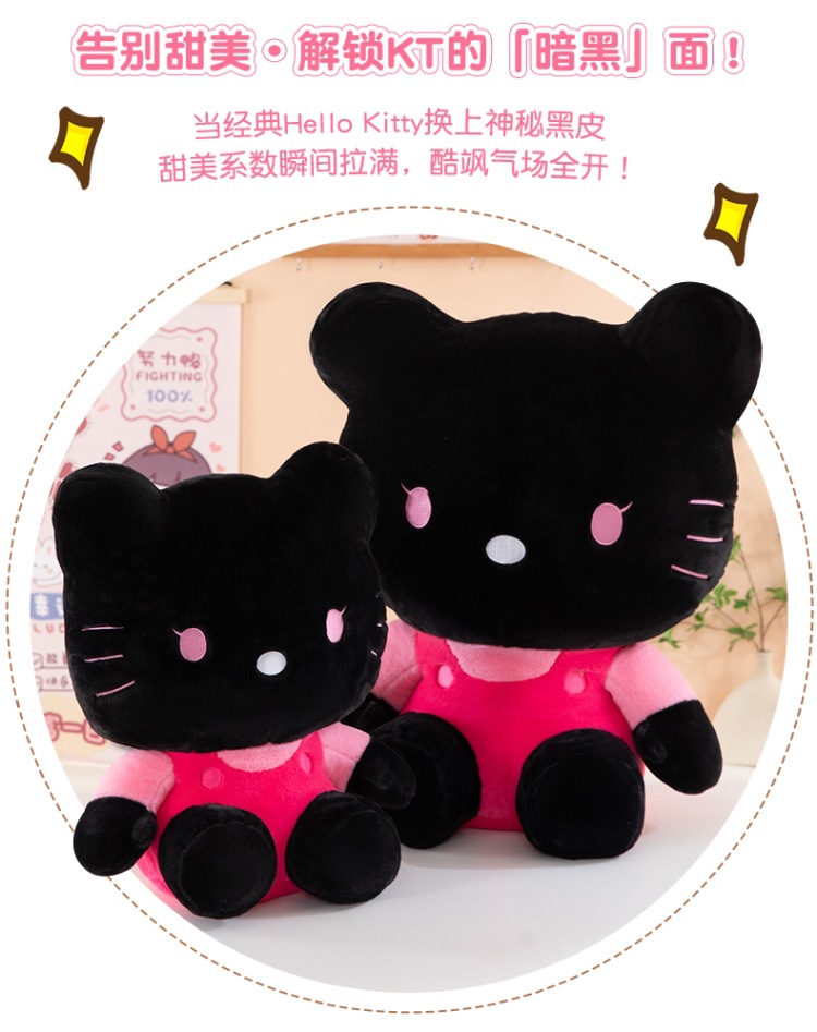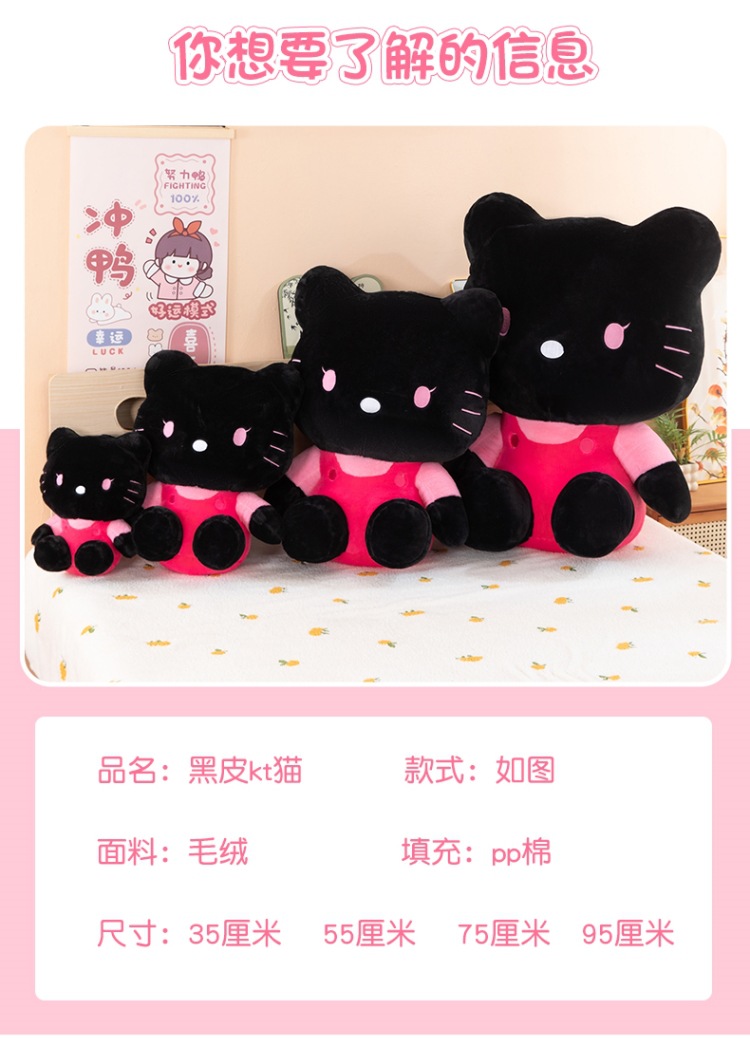 黑粉hellokitty公仔黑皮KT毛猫hallo包包书包挂饰批发 English | 投诉