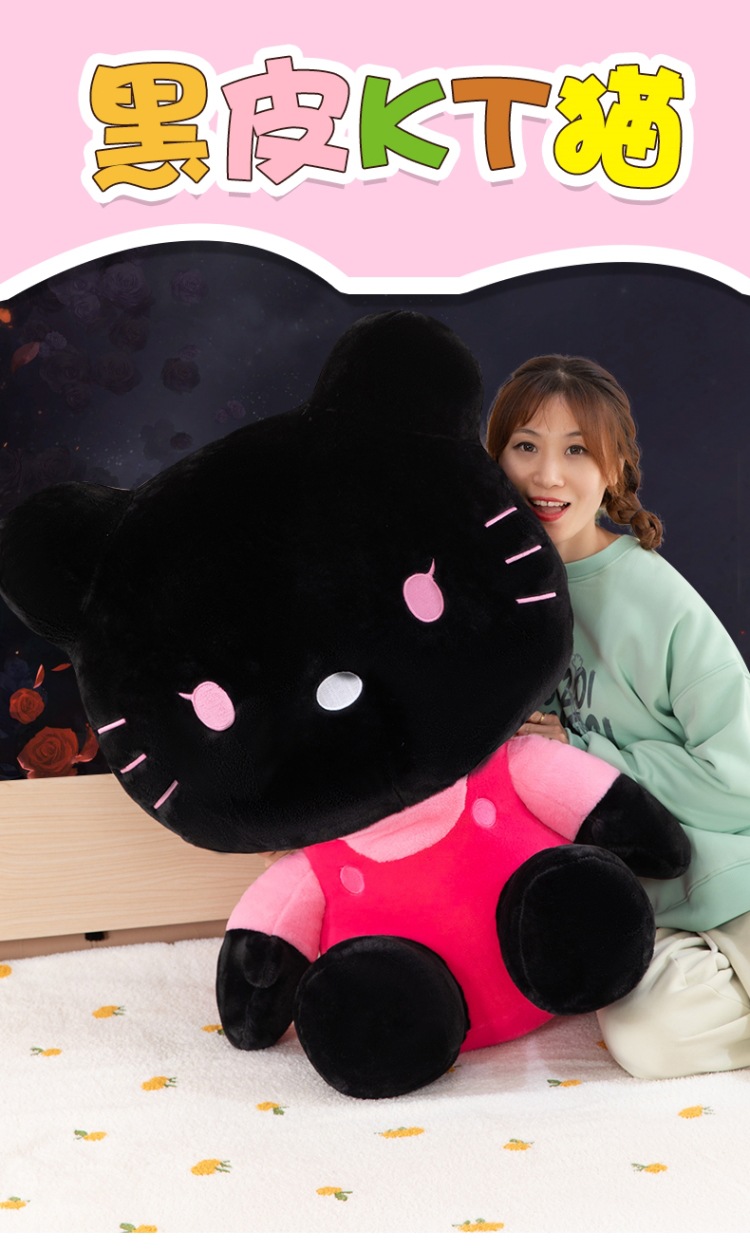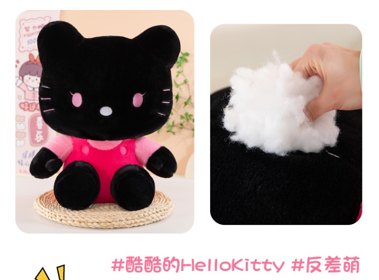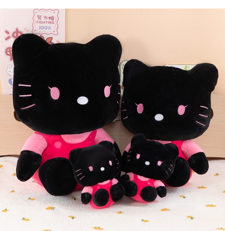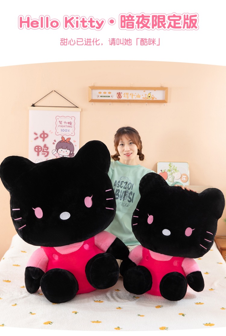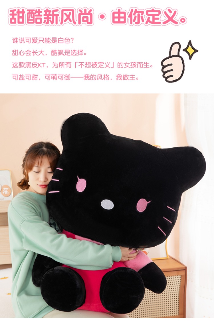 黑粉hellokitty公仔黑皮KT毛猫hallo包包书包挂饰批发 English | 投诉